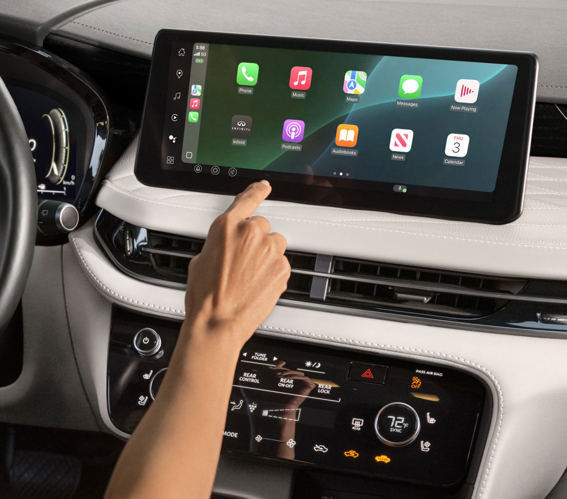 • Wireless Apple CarPlay® - The 2026 INFINITI QX60 comes standard-equipped with wireless Apple CarPlay®, giving you the ability to enjoy the full suite of Apple’s onboard connected offerings — all without ever connecting a cord or cable. [*]