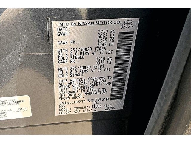 - Tires: P255/50R20 All-Season