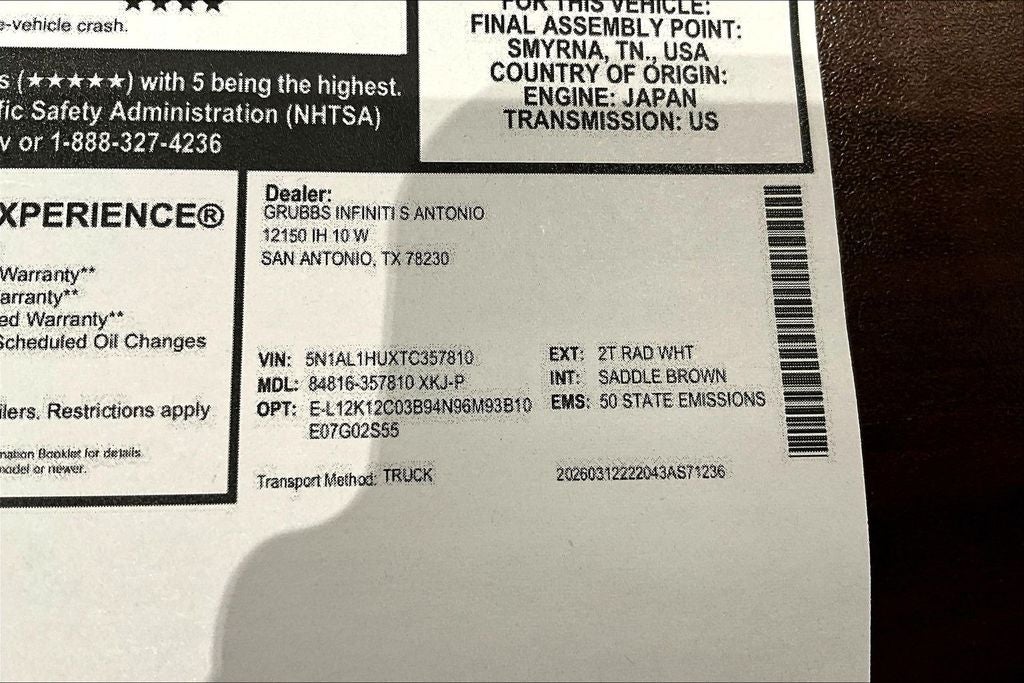 Contact us now to find out why so many customers from across the US rely on Grubbs INFINITI of San Antonio, a family owned business since 1948, to meet their automotive needs! Outside of San Antonio area, no problem, we offer: Reliable, affordable and fast shipping options Nationwide- Our shipping partners are licensed, bonded, fully insured & experienced with high-end vehicles. Hassle free and competitive financing options - Let us leverage our relationships with leading Banks & Credit Unions to get you the lowest rates and best terms for all credit types. Whether you're shopping for a new INFINITI or a quality used pre-owned vehicle you'll receive the same first-class experience from our certified staff of factory trained specialists. Call us today 210-728-3486 or visit us at www.INFINITIofsanantonio.com. .$6000 - Retail Cash. Exp. 05/04/2026