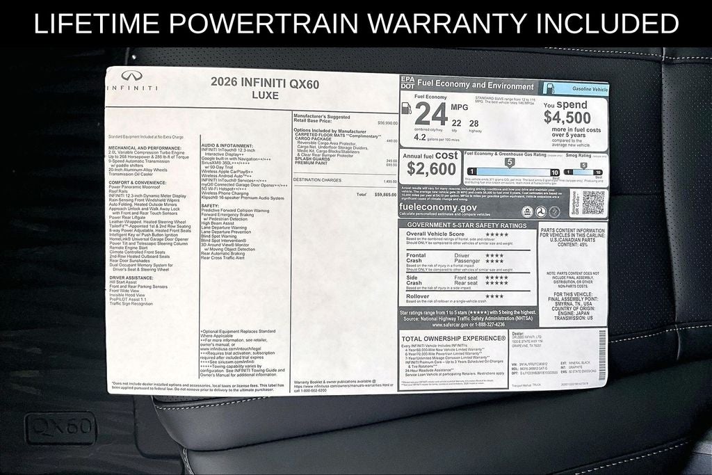 Whether you're embarking on a family road trip or navigating the daily commute, this 2026 INFINITI QX60 LUXE is the perfect companion. With its exceptional performance, uncompromising luxury, and cutting-edge technology, it's the ultimate expression of automotive excellence.