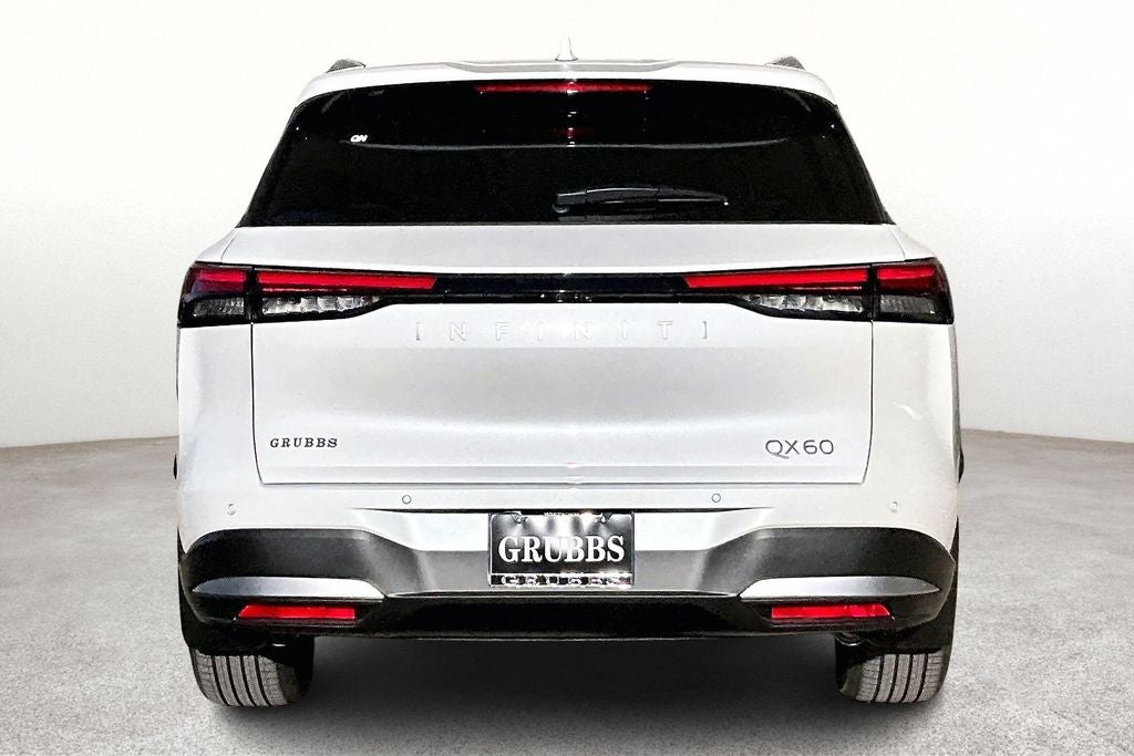 Grubbs INFINITI – The Only Authorized INFINITI Dealer in Grapevine Proudly serving drivers across the U.S. Since 1948! Explore one of the largest selections of New and Pre-Owned INFINITI vehicles in the area — all backed by our commitment to excellence and exceptional customer service. Every New Grubbs INFINITI comes with: Our Exclusive Lifetime Powertrain Warranty 3 Years of INFINITI-Recommended Maintenance – Included, with No Charge Valet Service when servicing your vehicle with pick up and drop at work or home and Hassle-Free Nationwide Shipping is Available. This 2026 INFINITI QX60 LUXE in Radiant White with Premium Graphite interior is equipped with the following high value Features 16 Speakers, 3rd row seats: bench, 4-Wheel Disc Brakes, ABS brakes, Air Conditioning, AM/FM radio: SiriusXM with 360L, Anti-whiplash front head restraints, Apple CarPlay/Android Auto, Auto High-beam Headlights, Auto tilt-away steering wheel, Auto-dimming door mirrors, Auto-dimming Rear-View mirror, Automatic temperature control, Bose Performance Series 17-Speaker Sound System, Brake assist, Bumpers: body-color, Climate Controlled Front Bucket Seats, Delay-off headlights, Driver door bin, Driver vanity mirror, Dual front impact airbags, Dual front side impact airbags, Electronic Stability Control, Emergency communication system: INFINITI InTouch, Floor Mats with Bench Seats on 3rd Row Tray, Four wheel independent suspension, Front anti-roll bar, Front Bucket Seats, Front Center Armrest, Front dual zone A/C, Front reading lights, Fully automatic headlights, Garage door transmitter: HomeLink, Heated door mirrors, Heated front seats, Heated rear seats, Heated steering wheel, Illuminated entry, Knee airbag, Leather Shift Knob, Leather steering wheel, Literature Kit, Low tire pressure warning, Memory seat, Navigation system: Google Built-in, Occupant sensing airbag, Outside temperature display, Overhead airbag, Overhead console, Panic alarm, Passenger vanity mirror, Power door mirrors, Power driver seat, Power Liftgate, Power moonroof: Panoramic, Power passenger seat, Power steering, Power windows, Radio data system, Radio: Klipsch Premium Audio System, Rain sensing wipers, Rear air conditioning, Rear anti-roll bar, Rear reading lights, Rear seat center armrest, Rear side impact airbag, Rear window defroster, Rear window wiper, Reclining 3rd row seat, Remote keyless entry, Security system, Speed control, Speed-sensing steering, Speed-Sensitive Wipers, Splash Guards, Split folding rear seat, Spoiler, Steering wheel memory, Steering wheel mounted audio controls, Super Premium Paint, Tachometer, Tailorfit-Appointed Seating Surfaces, Telescoping steering wheel, Tilt steering wheel, Traction control, Trip computer, Turn signal indicator mirrors, Variably intermittent wipers, Ventilated front seats, and Wheels: 20 x 8J Machined Aluminum Alloy.