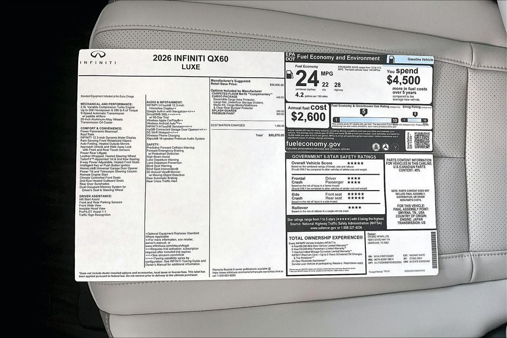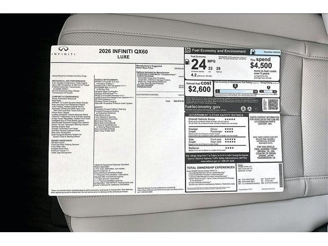 - Radio: Klipsch Premium Audio System -inc: 16 speakers w/subwoofer, INFINITI InTouch 12.3" interactive display, Google built-in w/navigation: Google Assistant, Playstore, maps and data, SiriusXM satellite radio, wireless Apple CarPlay, wireless Android Auto, advanced voice recognition (one shot VDE, Natural Language Understanding (NLU)), INFINITI InTouch services and 5G Wi-Fi hotspot, Active Noise Cancellation (ANC) and 2 data capable type C USB ports in front row