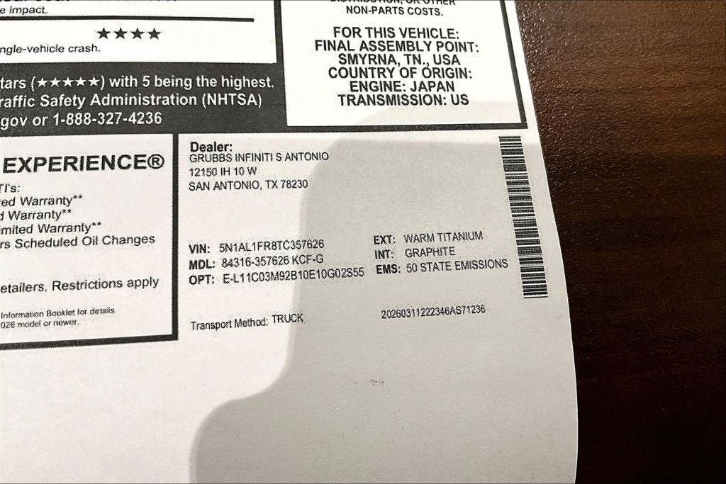 Contact us now to find out why so many customers from across the US rely on Grubbs INFINITI of San Antonio, a family owned business since 1948, to meet their automotive needs! Outside of San Antonio area, no problem, we offer: Reliable, affordable and fast shipping options Nationwide- Our shipping partners are licensed, bonded, fully insured & experienced with high-end vehicles. Hassle free and competitive financing options - Let us leverage our relationships with leading Banks & Credit Unions to get you the lowest rates and best terms for all credit types. Whether you're shopping for a new INFINITI or a quality used pre-owned vehicle you'll receive the same first-class experience from our certified staff of factory trained specialists. Call us today 210-728-3486 or visit us at www.INFINITIofsanantonio.com. .$5000 - Retail Cash. Exp. 05/04/2026