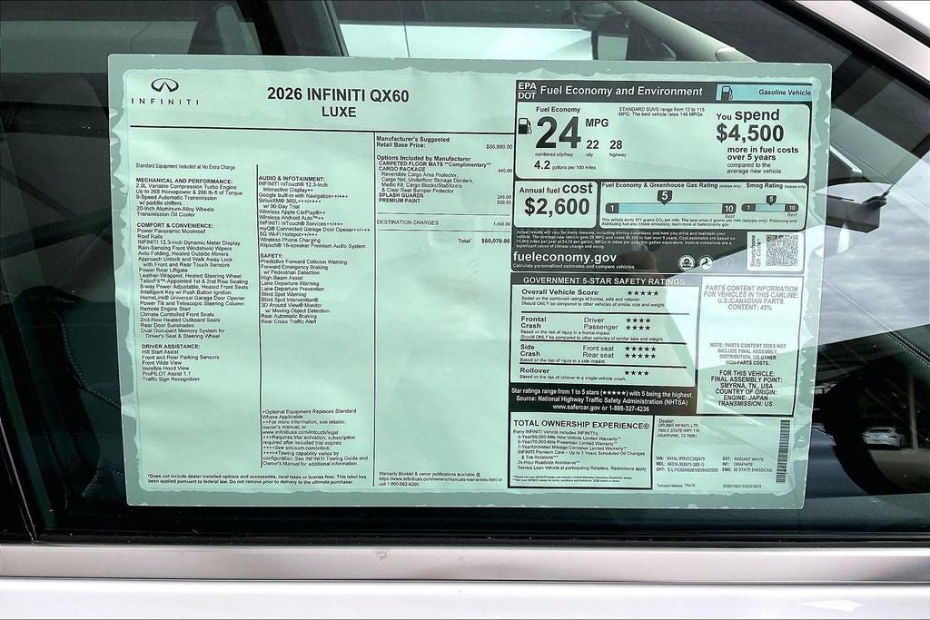 - Radio: Klipsch Premium Audio System -inc: 16 speakers w/subwoofer, INFINITI InTouch 12.3" interactive display, Google built-in w/navigation: Google Assistant, Playstore, maps and data, SiriusXM satellite radio, wireless Apple CarPlay, wireless Android Auto, advanced voice recognition (one shot VDE, Natural Language Understanding (NLU)), INFINITI InTouch services and 5G Wi-Fi hotspot, Active Noise Cancellation (ANC) and 2 data capable type C USB ports in front row