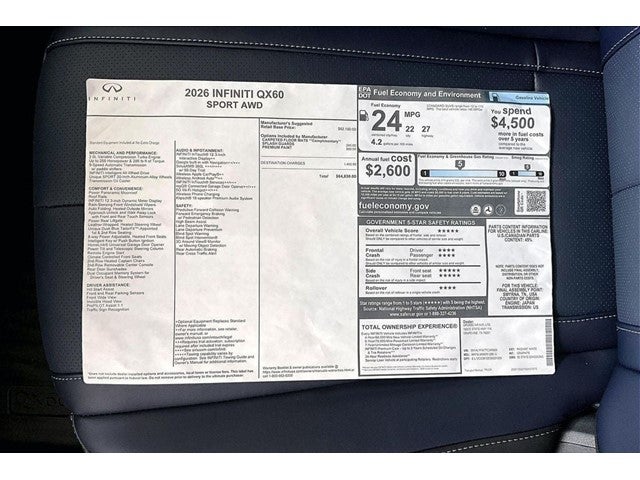 Grubbs INFINITI – The Only Authorized INFINITI Dealer in Grapevine Proudly serving drivers across the U.S. Since 1948! Explore one of the largest selections of New and Pre-Owned INFINITI vehicles in the area — all backed by our commitment to excellence and exceptional customer service. Every New Grubbs INFINITI comes with: Our Exclusive Lifetime Powertrain Warranty 3 Years of INFINITI-Recommended Maintenance – Included, with No Charge Valet Service when servicing your vehicle with pick up and drop at work or home and Hassle-Free Nationwide Shipping is Available. This 2026 INFINITI QX60 SPORT in Radiant White with Premium Graphite interior comes equipped with the following high value Features.