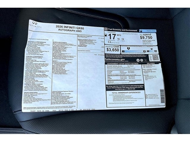 Grubbs INFINITI – The Only Authorized INFINITI Dealer in Grapevine Proudly serving drivers across the U.S. Since 1948! Explore one of the largest selections of New and Pre-Owned INFINITI vehicles in the area — all backed by our commitment to excellence and exceptional customer service. Every New Grubbs INFINITI comes with: Our Exclusive Lifetime Powertrain Warranty 3 Years of INFINITI-Recommended Maintenance – Included at No Charge Valet Service when servicing your vehicle with pick up and drop at work or home Hassle-Free Nationwide Shipping Available This 2026 INFINITI QX80 AUTOGRAPH in Mineral Black with Graphite interior comes equipped with the following high value Features Premium Cargo Package (Cargo Blocks/Stabilizers, Cargo Shelf/Barrier, Carpeted Cargo Area Protector, Console Net, and Soft-Sided Cargo Cooler), Automatic temperature control, Heads-Up Display, HVAC memory, Memory seat, Navigation system: Google Built-in, Power Liftgate, Power moonroof, Radio: Klipsch Reference Premiere Audio System, and Security system.