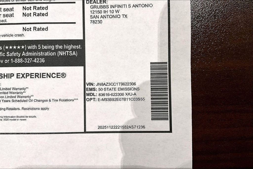 Contact us now to find out why so many customers from across the US rely on Grubbs INFINITI of San Antonio, a family owned business since 1948, to meet their automotive needs! Outside of San Antonio area, no problem, we offer: Reliable, affordable and fast shipping options Nationwide- Our shipping partners are licensed, bonded, fully insured & experienced with high-end vehicles. Hassle free and competitive financing options - Let us leverage our relationships with leading Banks & Credit Unions to get you the lowest rates and best terms for all credit types. Whether you're shopping for a new INFINITI or a quality used pre-owned vehicle you'll receive the same first-class experience from our certified staff of factory trained specialists. Call us today 210-728-3486 or visit us at www.INFINITIofsanantonio.com. .$7000 - Retail Cash. Exp. 02/02/2026
