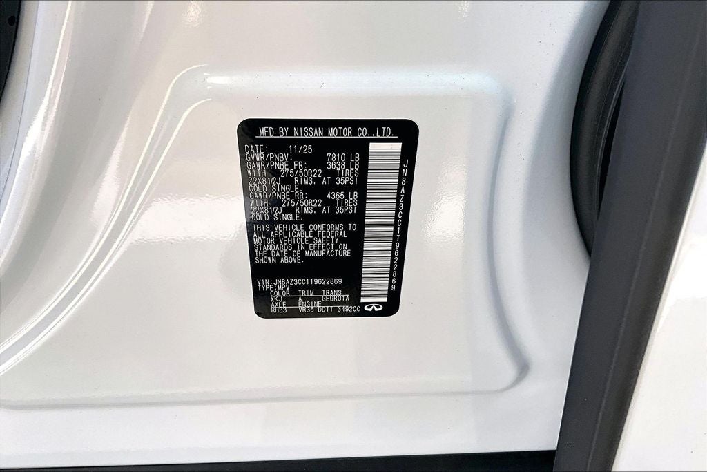 Grubbs INFINITI – The Only Authorized INFINITI Dealer in Grapevine Proudly serving drivers across the U.S. Since 1948! Explore one of the largest selections of New and Pre-Owned INFINITI vehicles in the area — all backed by our commitment to excellence and exceptional customer service. Every New Grubbs INFINITI comes with: Our Exclusive Lifetime Powertrain Warranty 3 Years of INFINITI-Recommended Maintenance – Included, with No Charge Valet Service when servicing your vehicle with pick up and drop at work or home and Hassle-Free Nationwide Shipping is Available. This 2026 INFINITI QX80 AUTOGRAPH in Radiant White/Black Obsidian with Premium Burgundy interior is equipped with the following high value Features Premium Cargo Package (Carpeted Cargo Area Protector, Console Net, and Soft-Sided Cargo Cooler), 3rd row seats: bench, 4-Wheel Disc Brakes, ABS brakes, Adaptive suspension, Air Conditioning, Anti-whiplash front head restraints, Apple CarPlay/Android Auto, Auto High-beam Headlights, Auto tilt-away steering wheel, Auto-dimming door mirrors, Auto-dimming Rear-View mirror, Auto-leveling suspension, Automatic temperature control, Brake assist, Bumpers: body-color, Compass, Delay-off headlights, Driver door bin, Driver vanity mirror, Dual front impact airbags, Dual front side impact airbags, Electronic Stability Control, Emergency communication system: INFINITI InTouch, Four wheel independent suspension, Front Bucket Seats, Front dual zone A/C, Front reading lights, Fully automatic headlights, Garage door transmitter: myQ Connected Garage, Genuine wood dashboard insert, Genuine wood door panel insert, Heads-Up Display, Heated and Climate Controlled Front Bucket Seats with Massage, Heated door mirrors, Heated front seats, Heated rear seats, Heated steering wheel, HVAC memory, Illuminated entry, Knee airbag, Leather steering wheel, Low tire pressure warning, Memory seat, Navigation system: Google Built-in, Occupant sensing airbag, Outside temperature display, Overhead airbag, Overhead console, Panic alarm, Passenger vanity mirror, Power door mirrors, Power driver seat, Power Liftgate, Power moonroof, Power passenger seat, Power steering, Power windows, Radio: Klipsch Premiere Audio System, Rain sensing wipers, Rear air conditioning, Rear reading lights, Rear seat center armrest, Rear window defroster, Rear window wiper, Reclining 3rd row seat, Remote keyless entry, Security system, Semi-Aniline Premium Leather Seating Surfaces, Speed control, Speed-sensing steering, Splash Guards, Split folding rear seat, Spoiler, Steering wheel memory, Steering wheel mounted audio controls, Tachometer, Telescoping steering wheel, Tilt steering wheel, Traction control, Trip computer, Turn signal indicator mirrors, Two-Tone Super Premium Paint, Umbrella Holder, Variably intermittent wipers, Ventilated front seats, Ventilated rear seats, and Wheels: 22 x 8.5J Cast Aluminum-Alloy.