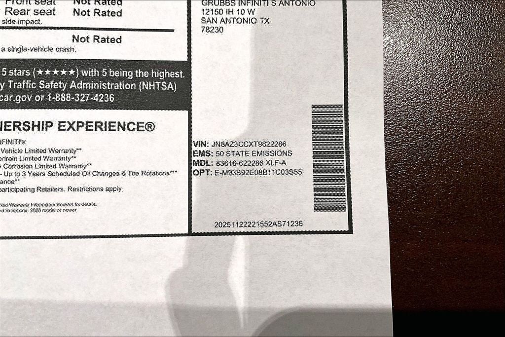 Contact us now to find out why so many customers from across the US rely on Grubbs INFINITI of San Antonio, a family owned business since 1948, to meet their automotive needs! Outside of San Antonio area, no problem, we offer: Reliable, affordable and fast shipping options Nationwide- Our shipping partners are licensed, bonded, fully insured & experienced with high-end vehicles. Hassle free and competitive financing options - Let us leverage our relationships with leading Banks & Credit Unions to get you the lowest rates and best terms for all credit types. Whether you're shopping for a new INFINITI or a quality used pre-owned vehicle you'll receive the same first-class experience from our certified staff of factory trained specialists. Call us today 210-728-3486 or visit us at www.INFINITIofsanantonio.com. .$7000 - Retail Cash. Exp. 02/02/2026