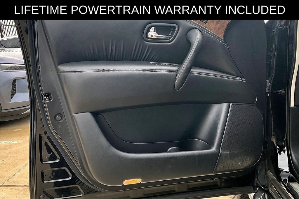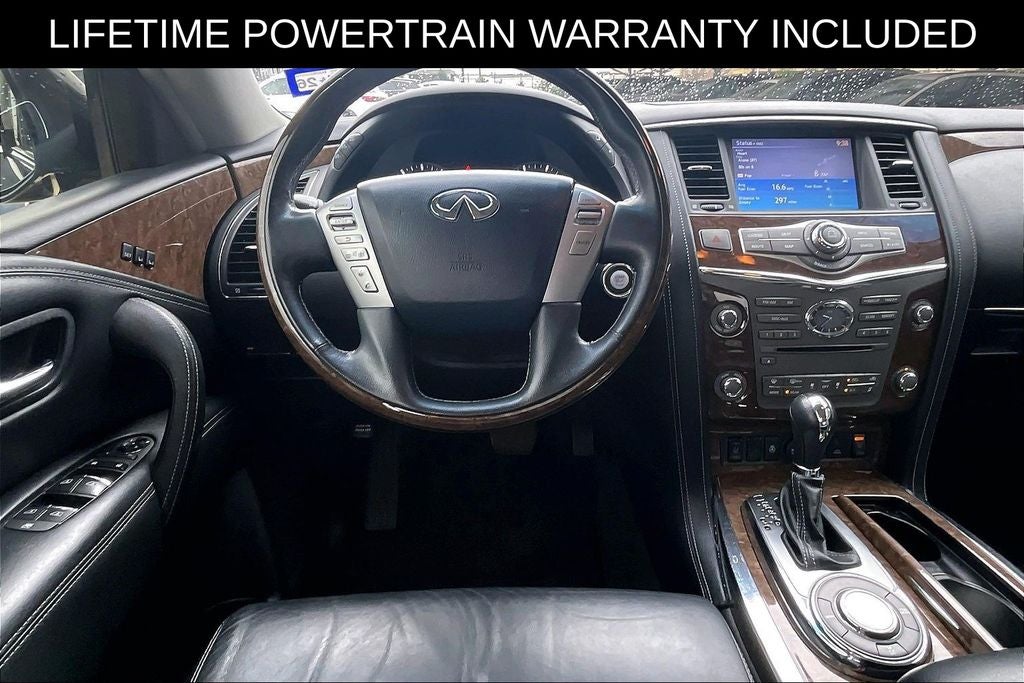 Recent Arrival! Grubbs INFINITI offers this Market Priced Pre-Owned 2017 INFINITI QX80 Signature Edition in Black Obsidian with a premium Graphite interior. Fully inspected and all Eligible Vehicles are backed by our exclusive Grubbs Lifetime Powertrain Warranty, it comes loaded with features including ABS brakes, Active Cruise Control, Alloy wheels, Electronic Stability Control, Front dual zone A/C, Heated door mirrors, Heated Front Bucket Seats, Heated front seats, Illuminated entry, Low tire pressure warning, Navigation System, Power Liftgate, Power moonroof, Remote keyless entry, and Traction control ABS brakes, Active Cruise Control, Alloy wheels, Electronic Stability Control, Front dual zone A/C, Heated door mirrors, Heated Front Bucket Seats, Heated front seats, Illuminated entry, Low tire pressure warning, Navigation System, Power Liftgate, Power moonroof, Remote keyless entry, Traction control, 13 Speakers, 2.94 Axle Ratio, 3rd row seats: split-bench, 4-Wheel Disc Brakes, Air Conditioning, AM/FM radio: SiriusXM, Anti-whiplash front head restraints, Auto High-beam Headlights, Auto tilt-away steering wheel, Auto-dimming door mirrors, Auto-dimming Rear-View mirror, Auto-leveling suspension, Automatic temperature control, Bose Premium Sound System, Brake assist, Bumpers: body-color, CD player, Delay-off headlights, Driver door bin, Driver vanity mirror, Dual front impact airbags, Dual front side impact airbags, Emergency communication system: INFINITI Connection, Fog lights, Four wheel independent suspension, Front anti-roll bar, Front Bucket Seats, Front Center Armrest, Front reading lights, Fully automatic headlights, Garage door transmitter: HomeLink, Genuine wood console insert, Genuine wood dashboard insert, Genuine wood door panel insert, Heated steering wheel, Leather Shift Knob, Leather steering wheel, Leather-Appointed Seats w/Mocha Burl Trim, Memory seat, Occupant sensing airbag, Outside temperature display, Overhead airbag, Overhead console, Panic alarm, Passenger door bin, Passenger vanity mirror, Power door mirrors, Power driver seat, Power passenger seat, Power steering, Power windows, Radio data system, Rain sensing wipers, Rear air conditioning, Rear anti-roll bar, Rear audio controls, Rear reading lights, Rear seat center armrest, Rear window defroster, Rear window wiper, Reclining 3rd row seat, Roof rack: rails only, Security system, Speed control, Speed-sensing steering, Split folding rear seat, Spoiler, Steering wheel memory, Steering wheel mounted audio controls, Tachometer, Telescoping steering wheel, Tilt steering wheel, Trip computer, Turn signal indicator mirrors, Variably intermittent wipers, Voltmeter, and Wheels: 22 x 8.0 Dark-Finished Forged Alum-Alloy. 2017 INFINITI QX80 Signature Edition 4D Sport Utility RWD 5.6L V8 7-Speed Automatic Black Obsidian ABS brakes, Active Cruise Control, Alloy wheels, Electronic Stability Control, Front dual zone A/C, Heated door mirrors, Heated Front Bucket Seats, Heated front seats, Illuminated entry, Low tire pressure warning, Navigation System, Power Liftgate, Power moonroof, Remote keyless entry, Traction control.