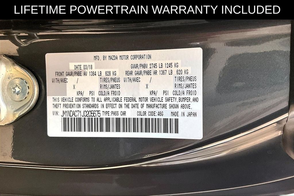 Recent Arrival! CARFAX One-Owner. Grubbs INFINITI offers this Market Priced Pre-Owned 2018 Mazda Miata Club in Machine Gray with a premium Black W/Red Stitching interior. Fully inspected and all Eligible Vehicles are backed by our exclusive Grubbs Lifetime Powertrain Warranty, it comes loaded with features including Black W/Red Stitching Black W/Red Stitching, 17 x 7 Dark Gunmetal Aluminum Alloy Wheels, 4-Wheel Disc Brakes, 9 Speakers, ABS brakes, Air Conditioning, Alloy wheels, AM/FM radio: SiriusXM, AM/FM/CD/MP3 Radio, BOSE Audio System, Brake assist, Bumpers: body-color, CD player, Cloth Upholstery, Convertible roof wind blocker, Door Sill Trim Plates, Driver vanity mirror, Dual front impact airbags, Dual front side impact airbags, Electronic Stability Control, Emergency communication system: MAZDA CONNECT, Four wheel independent suspension, Front anti-roll bar, Front Bucket Seats, Front Center Armrest, Glass rear window, Heated front seats, Illuminated entry, Leather Shift Knob, Low tire pressure warning, Machine Gray Paint Charge, MAZDA CONNECT Infotainment System, Occupant sensing airbag, Outside temperature display, Panic alarm, Passenger vanity mirror, Power door mirrors, Power steering, Power windows, Radio data system, Rear anti-roll bar, Rear window defroster, Reclining Heated Front Bucket Seats, Remote keyless entry, Speed control, Speed-sensing steering, Spoiler, Sport steering wheel, Steering wheel mounted audio controls, Tachometer, Tilt steering wheel, Traction control, Trip computer, and Variably intermittent wipers. 2018 Mazda Miata Club 2D Convertible RWD I4 6-Speed Manual Machine Gray Upgraded Wheel Package, Black W/Red Stitching.