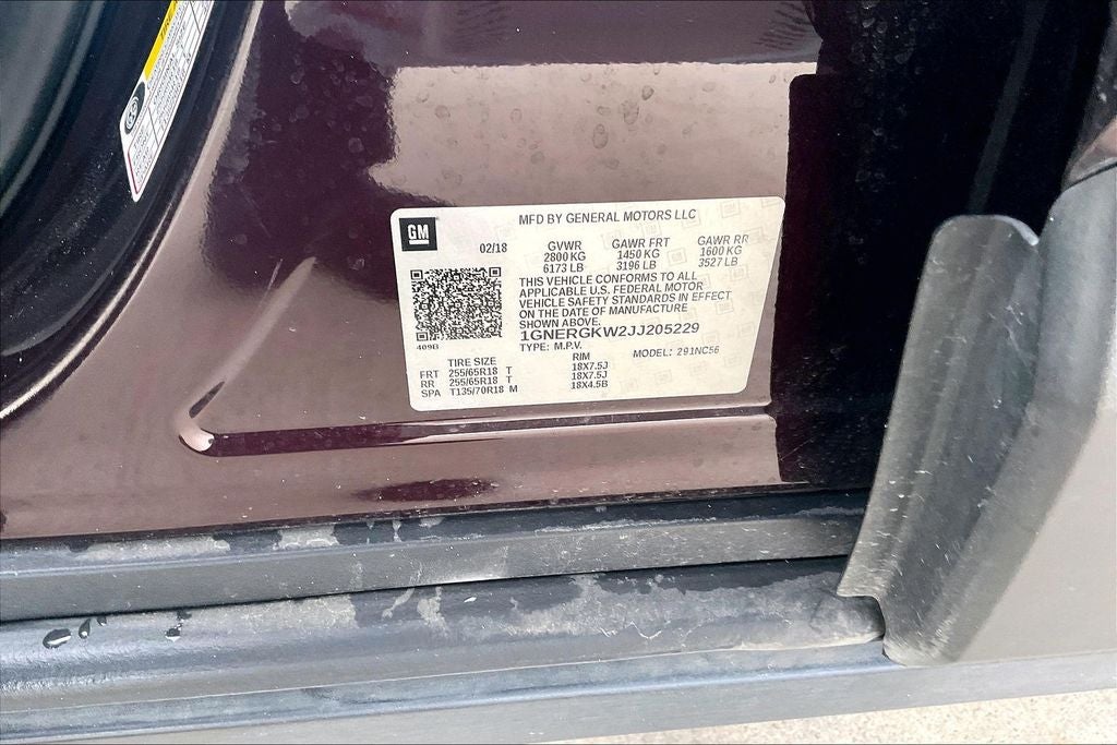 Recent Arrival! Grubbs INFINITI offers this Market Priced Pre-Owned 2018 Chevrolet Traverse LT Cloth w/1LT in Black Currant Metallic with a premium Dark Atmosphere/Medium Ash Gray interior. Fully inspected and all Eligible Vehicles are backed by our exclusive Grubbs Lifetime Powertrain Warranty, it comes loaded with features including Convenience & Driver Confidence Package (4.2 Multi-Color Enhanced Driver Instrument Display, Heated Driver & Front Passenger Seats, Lane Change Alert w/Side Blind Zone Alert, Radio: Chevrolet MyLink AM/FM Stereo w/8 Screen, Rear Cross-Traffic Alert, Rear Park Assist w/Audible Warning, Rear Power Liftgate, Remote Start, SiriusXM Satellite Radio, and Universal Home Remote), Front License Plate Bracket Mounting Package, Preferred Equipment Group 1LT, 3.49 Axle Ratio, 3rd row seats: split-bench, 4-Wheel Disc Brakes, 6 Speakers, 7-Passenger Seating (2-2-3 Seating Configuration), ABS brakes, Air Conditioning, Alloy wheels, AM/FM radio: SiriusXM, Apple CarPlay/Android Auto, Automatic temperature control, Brake assist, Bumpers: body-color, Compass, Delay-off headlights, Driver door bin, Driver vanity mirror, Dual front impact airbags, Dual front side impact airbags, Electronic Stability Control, Emergency communication system: OnStar Guidance, Exterior Parking Camera Rear, Fog lights, Four wheel independent suspension, Front anti-roll bar, Front Bucket Seats, Front Center Armrest, Front dual zone A/C, Front reading lights, Fully automatic headlights, Heated door mirrors, High-Intensity Discharge Headlights, Illuminated entry, Low tire pressure warning, Occupant sensing airbag, Outside temperature display, Overhead airbag, Overhead console, Panic alarm, Passenger door bin, Passenger vanity mirror, Power door mirrors, Power driver seat, Power steering, Power windows, Premium Cloth Seat Trim, Radio data system, Radio: Chevrolet MyLink AM/FM Stereo, Rear air conditioning, Rear anti-roll bar, Rear reading lights, Rear window defroster, Rear window wiper, Remote keyless entry, Roof rack: rails only, Security system, Speed control, Speed-sensing steering, Spoiler, Steering wheel mounted audio controls, Tachometer, Telescoping steering wheel, Tilt steering wheel, Traction control, Trip computer, Turn signal indicator mirrors, Variably intermittent wipers, Voltmeter, and Wheels: 18 Bright Silver Machined Painted Alum. 2018 Chevrolet Traverse LT Cloth w/1LT 4D Sport Utility FWD 3.6L V6 SIDI VVT 9-Speed Automatic Black Currant Metallic Upgraded Wheel Package.