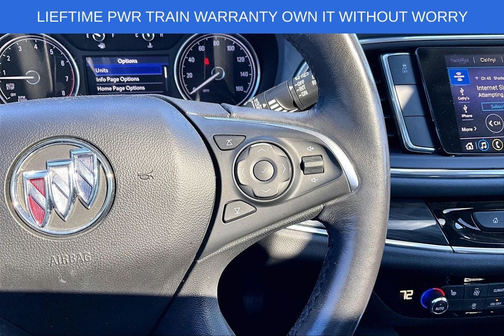 Grubbs INFINITI offers this Market Priced Pre-Owned 2020 Buick Enclave Essence in Summit White with a premium Dark Galvanized With Ebony Interior Accents interior. Fully inspected and all Eligible Vehicles are backed by our exclusive Grubbs Lifetime Powertrain Warranty, it comes loaded with features including FWD, 18 Painted Aluminum Wheels, Apple CarPlay/Android Auto, Front Power Sliding Moonroof, Heated Driver & Front Passenger Seats, Perforated Leather-Appointed Seat Trim, Power Liftgate, and Security system Front Mounting License Plate Bracket Package, Preferred Equipment Group 1SL, Sound & Sites Package (120-Volt Power Outlet, Bose Performance-Enhanced 10-Speaker System, and Radio: Buick Infotainment Sys AM/FM Stereo w/Nav), FWD, 18 Painted Aluminum Wheels, Apple CarPlay/Android Auto, Front Power Sliding Moonroof, Heated Driver & Front Passenger Seats, Perforated Leather-Appointed Seat Trim, Power Liftgate, Security system, 3.49 Axle Ratio, 3rd row seats: split-bench, 4-Wheel Disc Brakes, 7-Passenger Seating, ABS brakes, Air Conditioning, Alloy wheels, Auto High-beam Headlights, Auto-dimming door mirrors, Auto-dimming Rear-View mirror, Automatic temperature control, Brake assist, Bumpers: body-color, Compass, Delay-off headlights, Driver door bin, Driver vanity mirror, Dual front impact airbags, Dual front side impact airbags, Electronic Stability Control, Emergency communication system: OnStar and Buick connected services capable, Four wheel independent suspension, Front anti-roll bar, Front Bucket Seats, Front Center Armrest, Front dual zone A/C, Front reading lights, Fully automatic headlights, Garage door transmitter, Heated door mirrors, Heated front seats, Illuminated entry, Leather steering wheel, Low tire pressure warning, Occupant sensing airbag, Outside temperature display, Overhead airbag, Overhead console, Panic alarm, Passenger door bin, Passenger vanity mirror, Power door mirrors, Power Driver Lumbar Control Seat Adjuster, Power driver seat, Power Passenger Lumbar Control Seat Adjuster, Power passenger seat, Power steering, Power windows, Rear air conditioning, Rear anti-roll bar, Rear Parking Sensors, Rear reading lights, Rear window defroster, Rear window wiper, Remote keyless entry, Roof rack: rails only, Speed control, Speed-sensing steering, Spoiler, Steering wheel mounted audio controls, Tachometer, Telescoping steering wheel, Tilt steering wheel, Traction control, Trip computer, Turn signal indicator mirrors, Variably intermittent wipers, and Voltmeter. FWD, 18 Painted Aluminum Wheels, Apple CarPlay/Android Auto, Front Power Sliding Moonroof, Heated Driver & Front Passenger Seats, Perforated Leather-Appointed Seat Trim, Power Liftgate, Security system.