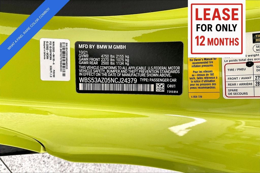 Discover the exhilarating performance and stunning style of this 2022 BMW M4 Base. With its powerful 3.0L I6 Turbocharged engine delivering an impressive 473 horsepower, this M4 is engineered to thrill. Paired with a smooth 6-speed manual transmission and rear-wheel drive, this BMW delivers an unparalleled driving experience that will leave you craving more.