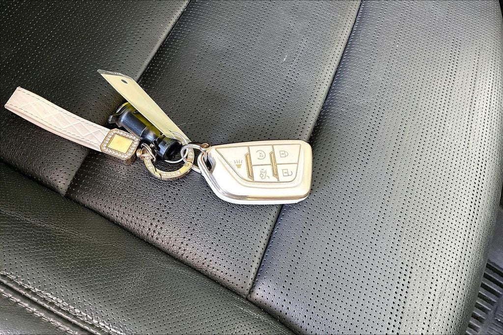 Boasting a stunning Crystal White Tricoat exterior, the Escalade Sport commands attention with its bold and distinctive styling. Complementing the sleek lines are a suite of premium features, including: