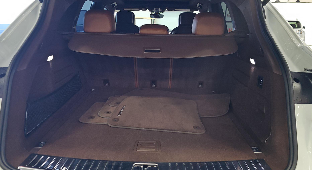 Adorned in a sleek white exterior, this Cayenne E-Hybrid Turbo S is equipped with a host of premium features that elevate the driving experience. Highlights include the SportDesign Package in high-gloss black, the Premium Package Plus, and a sport exhaust system with black tailpipes. Step inside the luxurious cabin and you'll be enveloped in a Truffle Brown/Cohiba Club leather interior with a two-tone design, complemented by the Exclusive Design gear selector and Porsche crest on the front and rear seat headrests.