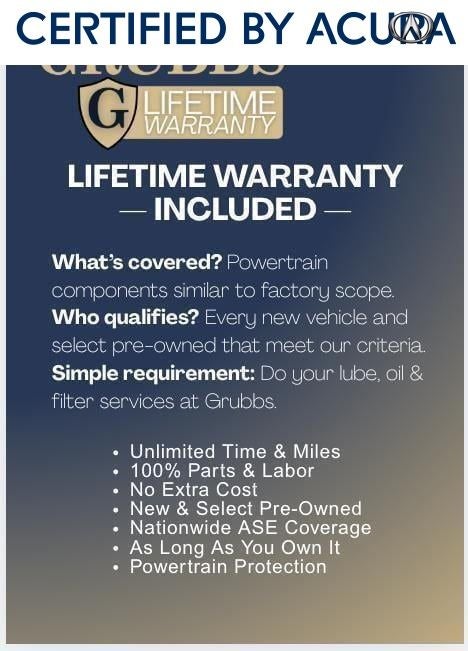 As an Acura Precision Certified pre-owned vehicle, this TLX has undergone a rigorous 182-point inspection and comes with a comprehensive warranty package, including a 24-month/100,000-mile limited warranty and an 84-month/100,000-mile powertrain warranty. Additionally, you'll enjoy complimentary roadside assistance, a 3-month AcuraLink trial, and 3-month SiriusXM Radio service.