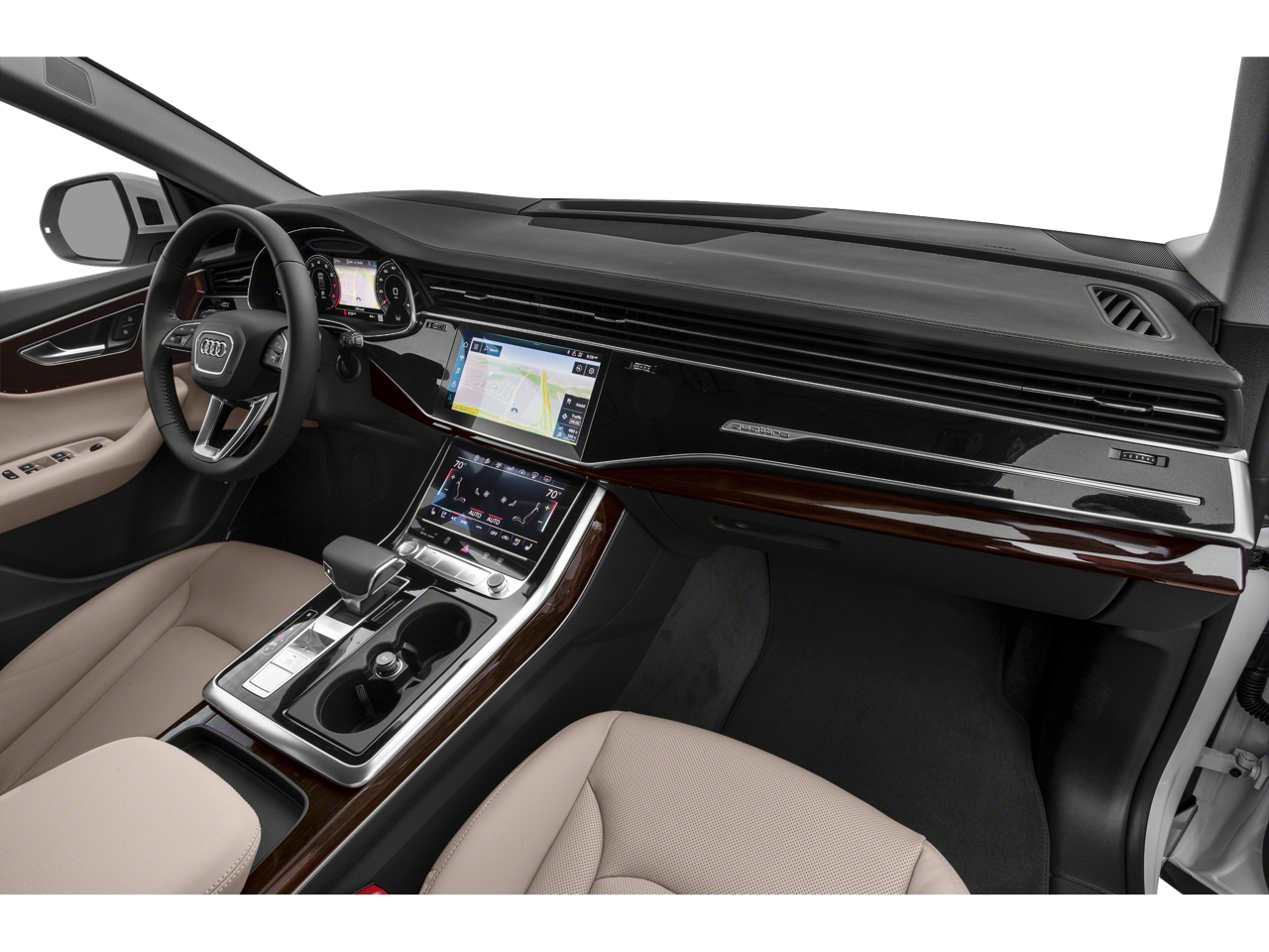 For added peace of mind, this Q8 is equipped with a comprehensive suite of advanced safety technologies, including the Top View Camera System, Blind Spot Information System, and Forward Pre-Collision Warning. Pamper yourself with the ventilated front seats and the heated steering wheel, creating a truly luxurious driving environment.