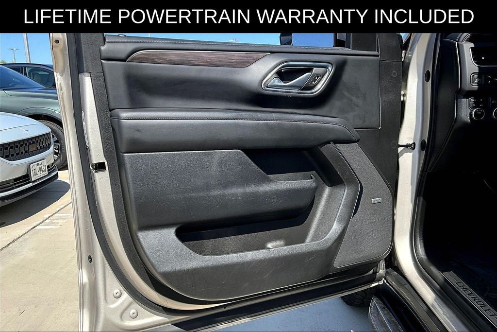 Recent Arrival! Grubbs INFINITI offers this Market Priced Pre-Owned 2023 Chevrolet Suburban LT in Beige Metallic with a premium Black interior. Fully inspected and all Eligible Vehicles are backed by our exclusive Grubbs Lifetime Powertrain Warranty, it comes loaded with features including License Plate Front Mounting Package, Preferred Equipment Group 1LT (10-Way Power Driver & Passenger Seat Adjusters, 1st & 2nd Row Color-Keyed Carpeted Floor Mats, Auto-Dimming Inside Rear-View Mirror, Bose 9-Speaker Stereo Audio System Feature, Bright Front & Rear Door Sill Plates, Color-Keyed Carpeting Floor Covering, Driver & Front Outboard Passenger Airbags, Enhanced Driver Information Center, Floor Console w/Storage Area, Hands-Free Rear Power Programmable Liftgate, Heated Driver & Front Passenger Seats, Infotainment Display, LED Daytime Running Lamps, Memory Settings For Driver, Remote Start, SiriusXM Radio w/360L, Universal Home Remote, Wireless Charging, and Wrapped Steering Wheel), 3.23 Rear Axle Ratio, 3rd row seats: split-bench, 4-Wheel Disc Brakes, 9 Speakers, ABS brakes, Air Conditioning, Alloy wheels, AM/FM radio: SiriusXM with 360L, Apple CarPlay/Android Auto, Auto High-beam Headlights, Auto-dimming Rear-View mirror, Automatic temperature control, Brake assist, Bumpers: body-color, Compass, Delay-off headlights, Deleted 3 Years of Remote Access, Driver door bin, Driver vanity mirror, Dual front impact airbags, Dual front side impact airbags, Electronic Stability Control, Emergency communication system: OnStar and Chevrolet connected services capable, Four wheel independent suspension, Front anti-roll bar, Front Bucket Seats, Front Center Armrest, Front dual zone A/C, Front reading lights, Fully automatic headlights, Garage door transmitter, Heated door mirrors, Heated front seats, Illuminated entry, Leather-Appointed Seating, Low tire pressure warning, Memory seat, Navigation System, Occupant sensing airbag, Outside temperature display, Overhead airbag, Overhead console, Panic alarm, Passenger door bin, Passenger vanity mirror, Power door mirrors, Power driver seat, Power Liftgate, Power passenger seat, Power steering, Power windows, Premium audio system: Chevrolet Infotainment 3 Premium, Premium Smooth Ride Suspension, Radio: Chevrolet Infotainment 3 Premium System, Rain sensing wipers, Rear air conditioning, Rear anti-roll bar, Rear reading lights, Rear seat center armrest, Rear window defroster, Rear window wiper, Remote keyless entry, Roof rack: rails only, Security system, Speed control, Speed-sensing steering, Split folding rear seat, Spoiler, Steering wheel mounted audio controls, Tachometer, Telescoping steering wheel, Tilt steering wheel, Traction control, Trip computer, Variably intermittent wipers, Voltmeter, and Wheels: 18 x 8.5 Bright Silver Painted Aluminum. 2023 Chevrolet Suburban LT 4D Sport Utility 4WD EcoTec3 5.3L V8 10-Speed Automatic with Overdrive Beige Metallic Upgraded Wheel Package.