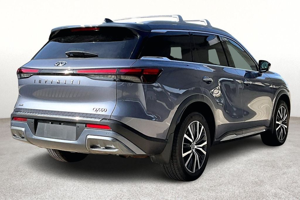 New Price! Recent Arrival! CARFAX One-Owner. Certified. Grubbs INFINITI offers this Market Priced Pre-Owned 2023 INFINITI QX60 Sensory in Moonbow Blue with a premium Graphite interior. Fully inspected and all Eligible Vehicles are backed by our exclusive Grubbs Lifetime Powertrain Warranty, it comes loaded with features including QX60 Sensory, 4D Sport Utility, 3.5L V6, 9-Speed Automatic, AWD, Moonbow Blue, and Graphite Leather Cargo Package (Cargo Mat (Reversible) and First Aid Kit), QX60 Sensory, INFINITI Certified Pre-Owned Certified, 4D Sport Utility, 3.5L V6, 9-Speed Automatic, AWD, Moonbow Blue, Graphite Leather, 17 Speakers, 3rd row seats: bench, 4-Wheel Disc Brakes, 4.334 Axle Ratio, ABS brakes, Air Conditioning, Alloy wheels, AM/FM radio: SiriusXM, Anti-whiplash front head restraints, Auto High-beam Headlights, Auto-dimming door mirrors, Auto-dimming Rear-View mirror, Automatic temperature control, Bose Performance Series 17-Speaker Sound System, Brake assist, Bumpers: body-color, Climate-Controlled Front Bucket Seats, Delay-off headlights, Driver door bin, Driver vanity mirror, Dual front impact airbags, Dual front side impact airbags, Electronic Stability Control, Emergency communication system, Floor Mats on Bench Seats w/3rd Row Tray, Four wheel independent suspension, Front anti-roll bar, Front Bucket Seats, Front Center Armrest, Front dual zone A/C, Front reading lights, Fully automatic headlights, Garage door transmitter: HomeLink, Heated door mirrors, Heated front seats, Heated rear seats, Heated steering wheel, Illuminated entry, Illuminated Kick Plate, Knee airbag, Leather Shift Knob, Leather steering wheel, Leather-Appointed Seating Surfaces, Literature Kit, Low tire pressure warning, Memory seat, Navigation system: INFINITI InTouch Navigation, Occupant sensing airbag, Outside temperature display, Overhead airbag, Overhead console, Panic alarm, Passenger door bin, Passenger vanity mirror, Power door mirrors, Power driver seat, Power Liftgate, Power moonroof, Power passenger seat, Power steering, Power windows, Radio data system, Radio: AM/FM Audio System, Rain sensing wipers, Rear air conditioning, Rear anti-roll bar, Rear reading lights, Rear seat center armrest, Rear side impact airbag, Rear window defroster, Rear window wiper, Reclining 3rd row seat, Remote keyless entry, Security system, Silver Cross Bar, Speed control, Speed-sensing steering, Speed-Sensitive Wipers, Splash Guards, Split folding rear seat, Spoiler, Steering wheel memory, Steering wheel mounted audio controls, Tachometer, Telescoping steering wheel, Tilt steering wheel, Traction control, Trip computer, Turn signal indicator mirrors, Variably intermittent wipers, Ventilated front seats, and Wheels: 20 x 8J Luxury Machined Aluminum Alloy. 2023 INFINITI QX60 Sensory 4D Sport Utility AWD 3.5L V6 9-Speed Automatic Moonbow Blue Upgraded Wheel Package, QX60 Sensory, 4D Sport Utility, 3.5L V6, 9-Speed Automatic, AWD, Moonbow Blue, Graphite Leather.