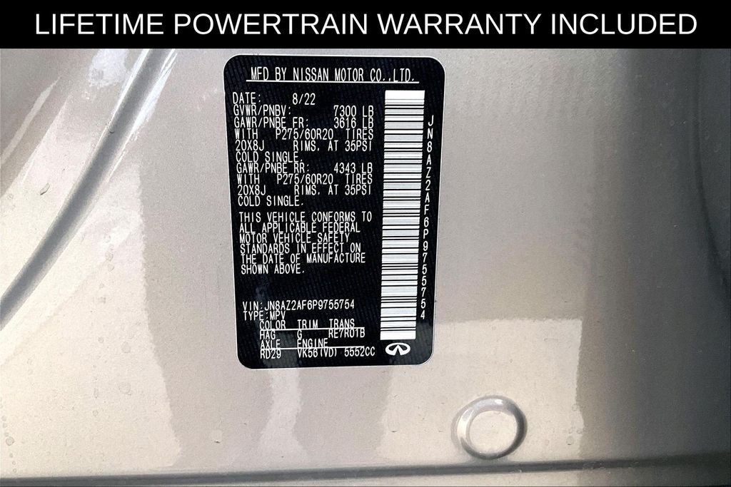 Recent Arrival! CARFAX One-Owner. Certified. Grubbs INFINITI offers this Market Priced Pre-Owned 2023 INFINITI QX80 LUXE in Champagne Quartz with a premium Graphite interior. Fully inspected and all Eligible Vehicles are backed by our exclusive Grubbs Lifetime Powertrain Warranty, it comes loaded with features including Cargo Package (Cargo Net, Carpeted Cargo Mat, Center Console Tray, Console Net, and First-Aid Kit), INFINITI Certified Pre-Owned Certified, 13 Speakers, 2.937 Axle Ratio, 3rd row seats: split-bench, 4-Wheel Disc Brakes, ABS brakes, Air Conditioning, Alloy wheels, AM/FM radio: SiriusXM, Anti-whiplash front head restraints, Auto High-beam Headlights, Auto tilt-away steering wheel, Auto-dimming door mirrors, Auto-dimming Rear-View mirror, Auto-leveling suspension, Automatic temperature control, Brake assist, Bumpers: body-color, Compass, Delay-off headlights, Driver door bin, Driver vanity mirror, Dual front impact airbags, Dual front side impact airbags, Electronic Stability Control, Emergency communication system: INFINITI InTouch, Fog lights, Four wheel independent suspension, Front anti-roll bar, Front Bucket Seats, Front Center Armrest, Front dual zone A/C, Front reading lights, Fully automatic headlights, Garage door transmitter: HomeLink, Heated door mirrors, Heated Front Bucket Seats, Heated front seats, Heated steering wheel, Illuminated entry, INFINITI Radiant Illuminated Kick Plates (N93), Leather Shift Knob, Leather steering wheel, Leather-Appointed Seats, Literature Kit, Low tire pressure warning, Memory seat, Navigation system: INFINITI InTouch Navigation, Occupant sensing airbag, Outside temperature display, Overhead airbag, Overhead console, Panic alarm, Passenger door bin, Passenger vanity mirror, Power door mirrors, Power driver seat, Power Liftgate, Power moonroof, Power passenger seat, Power steering, Power windows, Premium audio system: Bose, Radio data system, Radio: Bose Premium Audio System w/13 Speakers, Rain sensing wipers, Rear air conditioning, Rear anti-roll bar, Rear reading lights, Rear seat center armrest, Rear window defroster, Rear window wiper, Reclining 3rd row seat, Remote keyless entry, Security system, Speed control, Speed-sensing steering, Split folding rear seat, Spoiler, Steering wheel memory, Steering wheel mounted audio controls, Tachometer, Telescoping steering wheel, Tilt steering wheel, Traction control, Trip computer, Turn signal indicator mirrors, Variably intermittent wipers, Voltmeter, and Wheels: 20 x 8.0 Aluminum-Alloy. 2023 INFINITI QX80 LUXE 4D Sport Utility RWD 5.6L V8 7-Speed Automatic Champagne Quartz Upgraded Wheel Package.