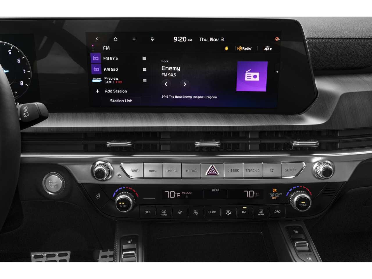 Stay comfortable and in control with the Automatic temperature control, Heads-Up Display, and Power driver seat. The Smart Key with Push Button and Remote Start make it easy to get on the road, while the Steering wheel mounted audio controls and Four wheel independent suspension provide a smooth and responsive ride.