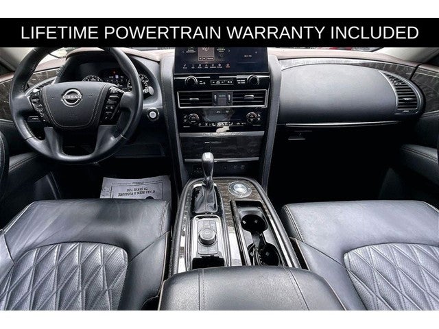 Recent Arrival! CARFAX One-Owner. Grubbs INFINITI offers this Market Priced Pre-Owned 2023 Nissan Armada Platinum in Aspen White Tricoat with a premium Black interior. Fully inspected and all Eligible Vehicles are backed by our exclusive Grubbs Lifetime Powertrain Warranty, it comes loaded with features including Captain's Chairs Package (2nd Row Captain's Chairs and 2nd Row Center Console w/Padded Armrest), Cargo Package, 13 Speakers, 2.94 Axle Ratio, 3rd Row Carpeted Floor Mats - Captain Seat, 3rd row seats: split-bench, 4-Wheel Disc Brakes, A/V remote, ABS brakes, Air Conditioning, Alloy wheels, AM/FM radio: SiriusXM, Anti-whiplash front head restraints, Auto High-beam Headlights, Auto tilt-away steering wheel, Auto-dimming door mirrors, Auto-dimming Rear-View mirror, Auto-leveling suspension, Automatic temperature control, Bose 13-Speaker Premium Audio System, Brake assist, Bumpers: body-color, Climate-Controlled Front Bucket Seats, Cross Bars, Delay-off headlights, Driver door bin, Driver vanity mirror, Dual front impact airbags, Dual front side impact airbags, Electronic Stability Control, Emergency communication system: NissanConnect Services, Exterior Parking Camera Rear, Fog lights, Four wheel independent suspension, Front anti-roll bar, Front Bucket Seats, Front Center Armrest, Front dual zone A/C, Front reading lights, Fully automatic headlights, Garage door transmitter: HomeLink, Headphones, Heated door mirrors, Heated front seats, Heated rear seats, Heated steering wheel, Illuminated entry, Knee airbag, Leather Shift Knob, Low tire pressure warning, Memory seat, Navigation System, NissanConnect featuring Apple CarPlay and Android Auto, Occupant sensing airbag, Outside temperature display, Overhead airbag, Overhead console, Panic alarm, Passenger door bin, Passenger vanity mirror, Power door mirrors, Power driver seat, Power Liftgate, Power moonroof, Power passenger seat, Power steering, Power windows, Premium audio system: Bose, Quilted Leather Seat Trim, Radio: NissanConnect w/SiriusXM, Rain sensing wipers, Rear air conditioning, Rear anti-roll bar, Rear reading lights, Rear seat center armrest, Rear window defroster, Rear window wiper, Rear-Seat Entertainment, Reclining 3rd row seat, Remote keyless entry, Security system, Speed control, Speed-sensing steering, Speed-Sensitive Wipers, Split folding rear seat, Spoiler, Steering wheel memory, Steering wheel mounted audio controls, Tachometer, Telescoping steering wheel, Tilt steering wheel, Traction control, Trip computer, Turn signal indicator mirrors, Variably intermittent wipers, Ventilated front seats, Voltmeter, and Wheels: 22 x 8J Machine-Faced w/Tinted Clear Coat. 2023 Nissan Armada Platinum 4D Sport Utility RWD 5.6L V8 DOHC 32V LEV3-ULEV125 400hp 7-Speed Automatic Aspen White Tricoat Upgraded Wheel Package.
