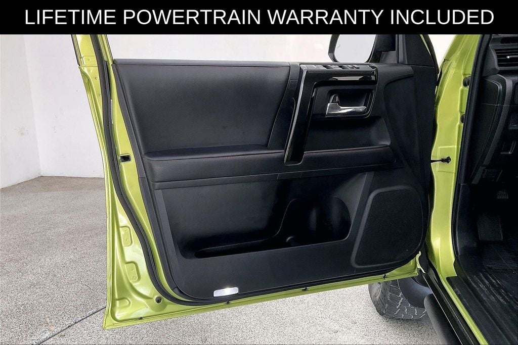 New Price! Recent Arrival! CARFAX One-Owner. Grubbs INFINITI offers this Market Priced Pre-Owned 2023 Toyota 4Runner TRD Off-Road Premium in Lime Rush with a premium Black/Graphite interior. Fully inspected and all Eligible Vehicles are backed by our exclusive Grubbs Lifetime Powertrain Warranty, it comes loaded with features including Off Road Premium Package (Garage Door Opener), 4Runner TRD Off-Road Premium, 4D Sport Utility, 4.0L V6 DOHC 24V, 5-Speed with ECT, 4WD, Lime Rush, Black/Graphite w/Leather Seat Trim, and Moonroof w/Tilt Up & Slide Off Road Premium Package (Garage Door Opener), 4Runner TRD Off-Road Premium, 4D Sport Utility, 4.0L V6 DOHC 24V, 5-Speed with ECT, 4WD, Lime Rush, Black/Graphite w/Leather Seat Trim, Moonroof w/Tilt Up & Slide, 3.727 Axle Ratio, 4-Wheel Disc Brakes, 8 Speakers, ABS brakes, Air Conditioning, Alloy wheels, AM/FM radio: SiriusXM, Anti-whiplash front head restraints, Apple CarPlay/Android Auto, Auto High-beam Headlights, Auto-dimming Rear-View mirror, Black Roof Rails, Brake assist, Bumpers: body-color, Compass, Driver door bin, Driver vanity mirror, Dual front impact airbags, Dual front side impact airbags, Electronic Stability Control, Emergency communication system: Safety Connect (1-year trial), Exterior Parking Camera Rear, Fog lights, Front anti-roll bar, Front Bucket Seats, Front Center Armrest, Front reading lights, Front wheel independent suspension, Garage door transmitter: HomeLink, Heated door mirrors, Heated Front Bucket Seats, Heated front seats, Heated Outside Rear-View Mirrors, Illuminated entry, Knee airbag, Leather Shift Knob, Low tire pressure warning, Navigation System, Occupant sensing airbag, Outside temperature display, Overhead airbag, Overhead console, Panic alarm, Passenger door bin, Passenger vanity mirror, Power door mirrors, Power driver seat, Power passenger seat, Power steering, Power windows, Radio: Premium Audio w/Dynamic Navigation, Rear anti-roll bar, Rear seat center armrest, Rear window defroster, Rear window wiper, Remote keyless entry, Security system, SofTex Seat Trim, Speed control, Speed-sensing steering, Split folding rear seat, Spoiler, Steering wheel mounted audio controls, Tachometer, Telescoping steering wheel, Tilt steering wheel, Traction control, Trip computer, Turn signal indicator mirrors, Variably intermittent wipers, and Wheels: 17 Unique 7-Spoke Off-Road Alloy. 2023 Toyota 4Runner TRD Off-Road Premium 4D Sport Utility 4WD 4.0L V6 DOHC 24V 5-Speed with ECT Lime Rush Upgraded Wheel Package, 4Runner TRD Off-Road Premium, 4D Sport Utility, 4.0L V6 DOHC 24V, 5-Speed with ECT, 4WD, Lime Rush, Black/Graphite w/Leather Seat Trim, Garage Door Opener, Moonroof w/Tilt Up & Slide, Off Road Premium Package.