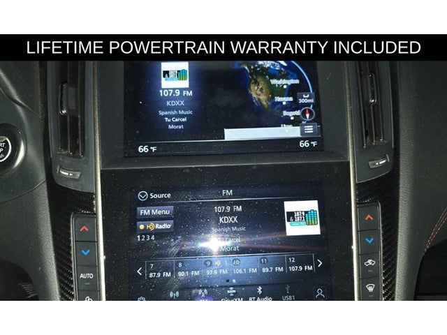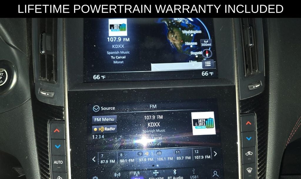 - Radio: INFINITI InTouch w/Navigation -inc: 16 speaker Bose Performance Series audio w/Bose Centerpoint simulated surround, dual HD display, navigation w/lane guidance, 3D building graphics, premium traffic and MapCare, voice recognition for navigation functions, including 1-shot voice destination entry, wireless Apple CarPlay, Siri Eyes Free, Android Auto, Bluetooth® hands-free phone system w/text messaging assistant, voice recognition for audio, Bluetooth® and vehicle information, streaming audio via Bluetooth®, 2 illuminated USB connection ports (1 type A, 1 type C), auxiliary audio input, HD Radio, SiriusXM radio w/advanced audio features w/3 month complimentary trial, SiriusXM Traffic w/3 month complimentary trial access to real-time traffic information, SiriusXM Travel Link w/3 month complimentary trial access to weather, fuel prices, stock prices, sports scores, movie listings and parking and Wi-Fi hotspot