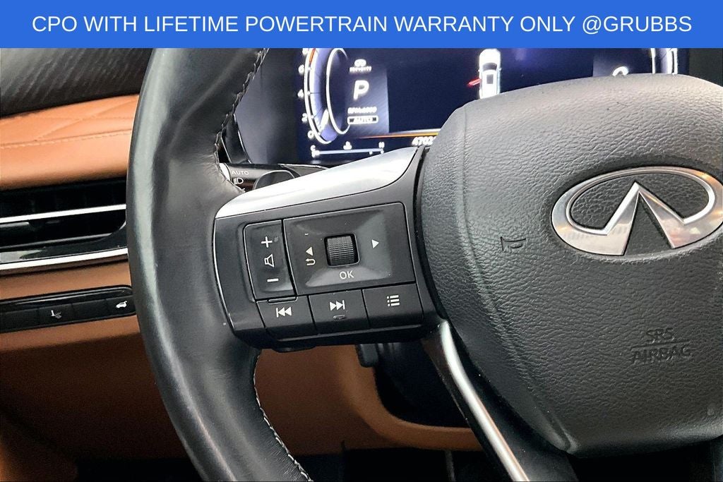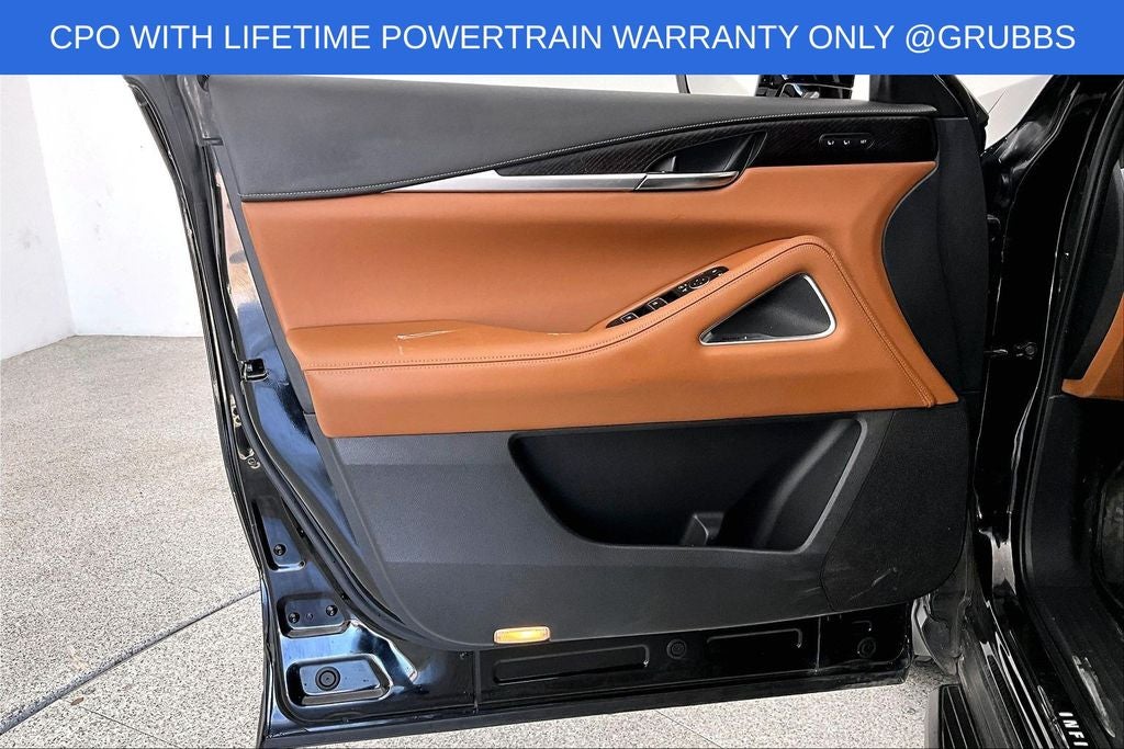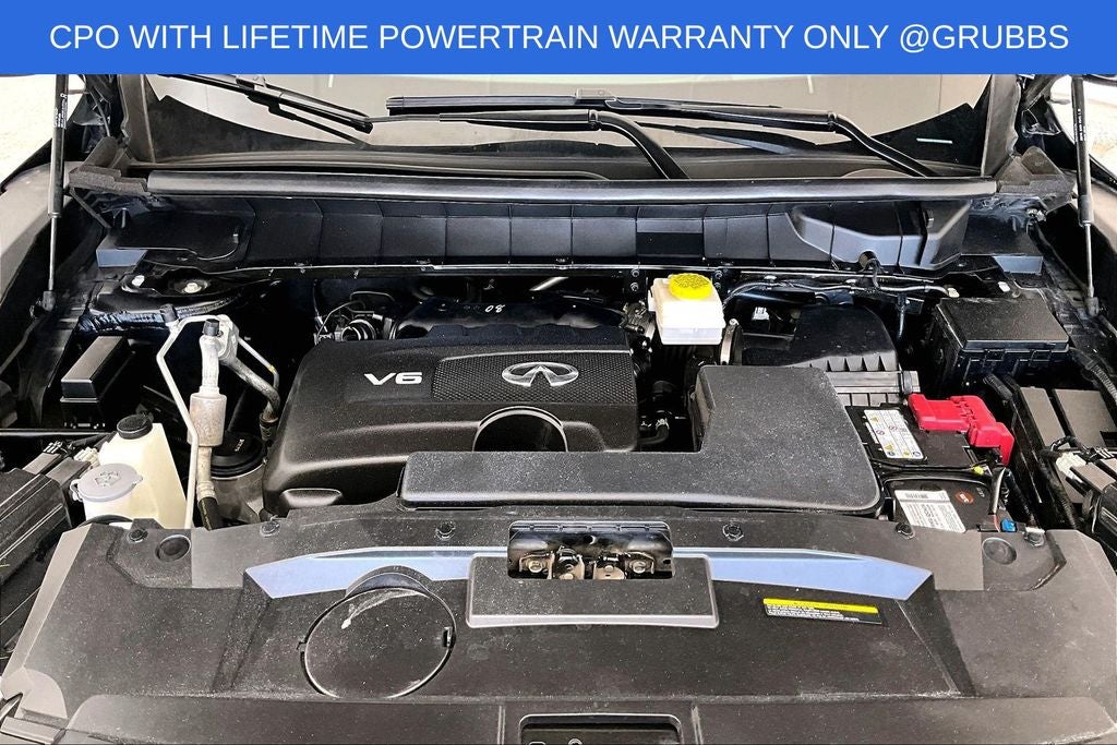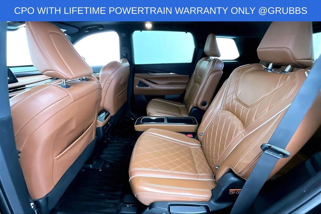 Grubbs INFINITI offers this Market Priced Pre-Owned 2024 INFINITI QX60 Autograph in Mineral Black with a premium Saddle Brown interior. Fully inspected and all Eligible Vehicles are backed by our exclusive Grubbs Lifetime Powertrain Warranty, it comes loaded with features including Cargo Package (Cargo Mat (Reversible)), Lighting Package w/Running Boards Installed, INFINITI Certified Pre-Owned Certified, 3rd row seats: bench, 4-Wheel Disc Brakes, 4.33 Axle Ratio, ABS brakes, Anti-whiplash front head restraints, Apple CarPlay/Android Auto, Auto High-beam Headlights, Auto tilt-away steering wheel, Auto-dimming door mirrors, Auto-dimming Rear-View mirror, Automatic temperature control, Black-Color Roof Rail Cross Bars, Bose Performance Series 17-Speaker Sound System, Brake assist, Climate Controlled Front Bucket Seats, Delay-off headlights, Driver door bin, Driver vanity mirror, Dual front impact airbags, Dual front side impact airbags, Electronic Stability Control, Emergency communication system: INFINITI InTouch, Exterior Parking Camera Rear, Four wheel independent suspension, Front anti-roll bar, Front Bucket Seats, Front Center Armrest, Front dual zone A/C, Front reading lights, Fully automatic headlights, Garage door transmitter: HomeLink, Heads-Up Display, Heated door mirrors, Heated front seats, Heated rear seats, Heated steering wheel, Illuminated entry, Knee airbag, Leather Shift Knob, Leather steering wheel, Low tire pressure warning, Memory seat, Navigation system: INFINITI InTouch Navigation, Occupant sensing airbag, Outside temperature display, Overhead airbag, Overhead console, Panic alarm, Passenger door bin, Passenger vanity mirror, Power door mirrors, Power driver seat, Power Liftgate, Power moonroof, Power passenger seat, Power steering, Power windows, Premium Paint - Mineral Black, Radio: AM/FM Audio System, Rain sensing wipers, Rear air conditioning, Rear anti-roll bar, Rear reading lights, Rear side impact airbag, Rear window defroster, Rear window wiper, Reclining 3rd row seat, Remote keyless entry, Running Boards, Security system, Semi Aniline Leather-Appointed Seating Surfaces, Speed control, Speed-sensing steering, Speed-Sensitive Wipers, Splash Guards (Set of 4), Split folding rear seat, Spoiler, Steering wheel memory, Steering wheel mounted audio controls, Tachometer, Telescoping steering wheel, Tilt steering wheel, Traction control, Trip computer, Turn signal indicator mirrors, Variably intermittent wipers, Ventilated front seats, and Wheels: 20 x 8J Luxury Machined Aluminum Alloy.