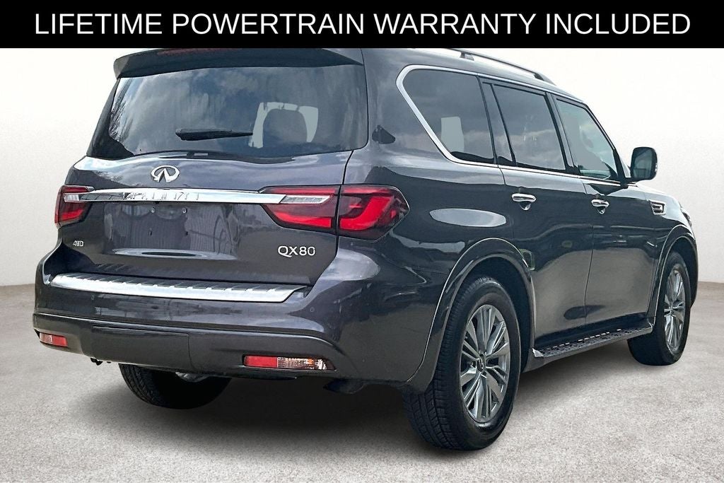 Recent Arrival! CARFAX One-Owner. Certified. Grubbs INFINITI offers this Market Priced Pre-Owned 2024 INFINITI QX80 LUXE in Anthracite Gray with a premium Graphite interior. Fully inspected and all Eligible Vehicles are backed by our exclusive Grubbs Lifetime Powertrain Warranty, it comes loaded with features including INFINITI Certified Pre-Owned Certified, 13 Speakers, 2.937 Axle Ratio, 20 Aluminum Alloy Wheels, 3rd row seats: bench, 4-Wheel Disc Brakes, ABS brakes, Air Conditioning, Alloy wheels, AM/FM radio: SiriusXM, Anti-whiplash front head restraints, Apple CarPlay/Android Auto, Auto High-beam Headlights, Auto tilt-away steering wheel, Auto-dimming door mirrors, Auto-dimming Rear-View mirror, Auto-leveling suspension, Automatic temperature control, Brake assist, Bumpers: body-color, Compass, Delay-off headlights, Driver door bin, Driver vanity mirror, Dual front impact airbags, Dual front side impact airbags, Electronic Stability Control, Emergency communication system: INFINITI InTouch, Fog lights, Four wheel independent suspension, Front anti-roll bar, Front Bucket Seats, Front Center Armrest, Front dual zone A/C, Front reading lights, Fully automatic headlights, Garage door transmitter: HomeLink, Heated door mirrors, Heated Front Bucket Seats, Heated front seats, Heated steering wheel, Illuminated entry, Leather Shift Knob, Leather steering wheel, Leather-Appointed Seats, Literature Kit, Low tire pressure warning, Memory seat, Navigation system: INFINITI InTouch Navigation, Occupant sensing airbag, Outside temperature display, Overhead airbag, Overhead console, Panic alarm, Passenger door bin, Passenger vanity mirror, Power door mirrors, Power driver seat, Power Liftgate, Power moonroof, Power passenger seat, Power steering, Power windows, Radio data system, Radio: Bose Premium Audio System w/13 Speakers, Rain sensing wipers, Rear air conditioning, Rear anti-roll bar, Rear reading lights, Rear seat center armrest, Rear window defroster, Rear window wiper, Reclining 3rd row seat, Remote keyless entry, Security system, Speed control, Speed-sensing steering, Split folding rear seat, Spoiler, Steering wheel memory, Steering wheel mounted audio controls, Tachometer, Telescoping steering wheel, Tilt steering wheel, Traction control, Trip computer, Turn signal indicator mirrors, Variably intermittent wipers, and Voltmeter. 2024 INFINITI QX80 LUXE 4D Sport Utility 4WD 5.6L V8 7-Speed Automatic Anthracite Gray Upgraded Wheel Package.