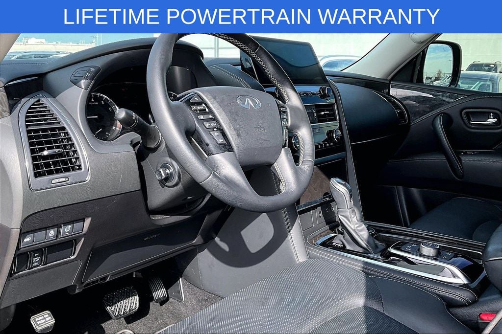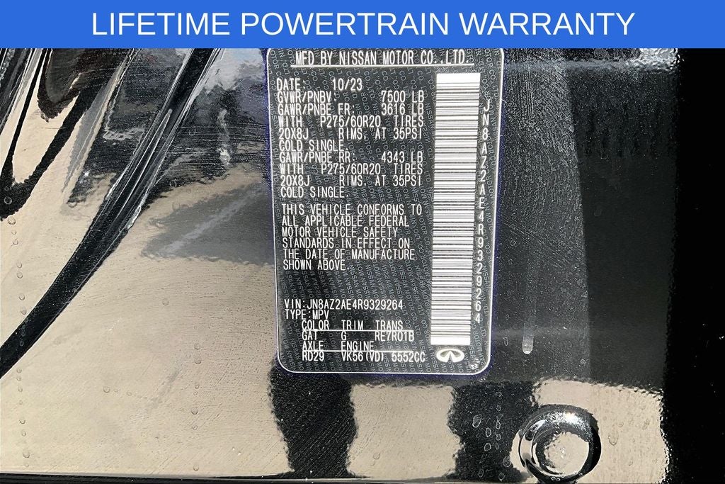 Grubbs INFINITI offers this Market Priced Pre-Owned 2024 INFINITI QX80 LUXE in Mineral Black with a premium Graphite interior. Fully inspected and all Eligible Vehicles are backed by our exclusive Grubbs Lifetime Powertrain Warranty, it comes loaded with features including Cargo Package (Console Net, First-Aid Kit, Moisture-Resistant Rear Cargo Carpet, and Nylon-Cord Cargo Net), INFINITI Certified Pre-Owned Certified, 20 Aluminum Alloy Wheels, Auto-leveling suspension, Automatic temperature control, Memory seat, Navigation system: INFINITI InTouch Navigation, Power Liftgate, Power moonroof, Premium Paint - Mineral Black, Radio: Bose Premium Audio System w/13 Speakers, Rain sensing wipers, 13 Speakers, 2.937 Axle Ratio, 3rd row seats: bench, 4-Wheel Disc Brakes, ABS brakes, Air Conditioning, Alloy wheels, AM/FM radio: SiriusXM, Anti-whiplash front head restraints, Apple CarPlay/Android Auto, Auto High-beam Headlights, Auto tilt-away steering wheel, Auto-dimming door mirrors, Auto-dimming Rear-View mirror, Brake assist, Bumpers: body-color, Compass, Delay-off headlights, Driver door bin, Driver vanity mirror, Dual front impact airbags, Dual front side impact airbags, Electronic Stability Control, Emergency communication system: INFINITI InTouch, Fog lights, Four wheel independent suspension, Front anti-roll bar, Front Bucket Seats, Front Center Armrest, Front dual zone A/C, Front reading lights, Fully automatic headlights, Garage door transmitter: HomeLink, Heated door mirrors, Heated Front Bucket Seats, Heated front seats, Heated steering wheel, Illuminated entry, INFINITI Radiant Illuminated Kick Plates (N93), Leather Shift Knob, Leather steering wheel, Leather-Appointed Seats, Literature Kit, Low tire pressure warning, Occupant sensing airbag, Outside temperature display, Overhead airbag, Overhead console, Panic alarm, Passenger door bin, Passenger vanity mirror, Power door mirrors, Power driver seat, Power passenger seat, Power steering, Power windows, Radio data system, Rear air conditioning, Rear anti-roll bar, Rear reading lights, Rear seat center armrest, Rear window defroster, Rear window wiper, Reclining 3rd row seat, Remote keyless entry, Security system, Speed control, Speed-sensing steering, Split folding rear seat, Spoiler, Steering wheel memory, Steering wheel mounted audio controls, Tachometer, Telescoping steering wheel, Tilt steering wheel, Traction control, Trip computer, Turn signal indicator mirrors, Variably intermittent wipers, and Voltmeter. 2024 INFINITI QX80 LUXE