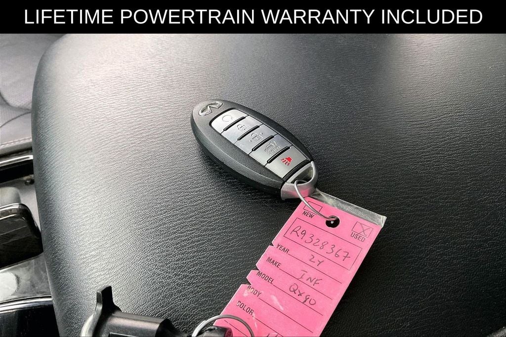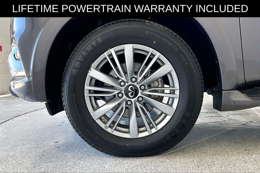Recent Arrival! CARFAX One-Owner. Certified. Grubbs INFINITI offers this Market Priced Pre-Owned 2024 INFINITI QX80 LUXE in Anthracite Gray with a premium Graphite interior. Fully inspected and all Eligible Vehicles are backed by our exclusive Grubbs Lifetime Powertrain Warranty, it comes loaded with features including INFINITI Certified Pre-Owned Certified, 13 Speakers, 2.937 Axle Ratio, 20 Aluminum Alloy Wheels, 3rd row seats: bench, 4-Wheel Disc Brakes, ABS brakes, Air Conditioning, Alloy wheels, AM/FM radio: SiriusXM, Anti-whiplash front head restraints, Apple CarPlay/Android Auto, Auto High-beam Headlights, Auto tilt-away steering wheel, Auto-dimming door mirrors, Auto-dimming Rear-View mirror, Auto-leveling suspension, Automatic temperature control, Brake assist, Bumpers: body-color, Compass, Delay-off headlights, Driver door bin, Driver vanity mirror, Dual front impact airbags, Dual front side impact airbags, Electronic Stability Control, Emergency communication system: INFINITI InTouch, Fog lights, Four wheel independent suspension, Front anti-roll bar, Front Bucket Seats, Front Center Armrest, Front dual zone A/C, Front reading lights, Fully automatic headlights, Garage door transmitter: HomeLink, Heated door mirrors, Heated Front Bucket Seats, Heated front seats, Heated steering wheel, Illuminated entry, Leather Shift Knob, Leather steering wheel, Leather-Appointed Seats, Literature Kit, Low tire pressure warning, Memory seat, Navigation system: INFINITI InTouch Navigation, Occupant sensing airbag, Outside temperature display, Overhead airbag, Overhead console, Panic alarm, Passenger door bin, Passenger vanity mirror, Power door mirrors, Power driver seat, Power Liftgate, Power moonroof, Power passenger seat, Power steering, Power windows, Radio data system, Radio: Bose Premium Audio System w/13 Speakers, Rain sensing wipers, Rear air conditioning, Rear anti-roll bar, Rear reading lights, Rear seat center armrest, Rear window defroster, Rear window wiper, Reclining 3rd row seat, Remote keyless entry, Security system, Speed control, Speed-sensing steering, Split folding rear seat, Spoiler, Steering wheel memory, Steering wheel mounted audio controls, Tachometer, Telescoping steering wheel, Tilt steering wheel, Traction control, Trip computer, Turn signal indicator mirrors, Variably intermittent wipers, and Voltmeter. 2024 INFINITI QX80 LUXE 4D Sport Utility 4WD 5.6L V8 7-Speed Automatic Anthracite Gray Upgraded Wheel Package.