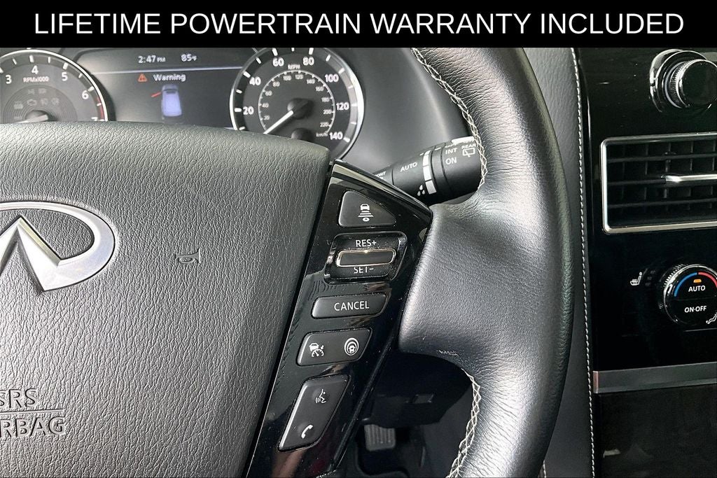 Recent Arrival! CARFAX One-Owner. Certified. Grubbs INFINITI offers this Market Priced Pre-Owned 2024 INFINITI QX80 LUXE in Hermosa Blue with a premium Graphite interior. Fully inspected and all Eligible Vehicles are backed by our exclusive Grubbs Lifetime Powertrain Warranty, it comes loaded with features including INFINITI Certified Pre-Owned Certified, 13 Speakers, 2.937 Axle Ratio, 20 Aluminum Alloy Wheels, 3rd row seats: bench, 4-Wheel Disc Brakes, ABS brakes, Air Conditioning, Alloy wheels, AM/FM radio: SiriusXM, Anti-whiplash front head restraints, Apple CarPlay/Android Auto, Auto High-beam Headlights, Auto tilt-away steering wheel, Auto-dimming door mirrors, Auto-dimming Rear-View mirror, Auto-leveling suspension, Automatic temperature control, Brake assist, Bumpers: body-color, Compass, Delay-off headlights, Driver door bin, Driver vanity mirror, Dual front impact airbags, Dual front side impact airbags, Electronic Stability Control, Emergency communication system: INFINITI InTouch, Fog lights, Four wheel independent suspension, Front anti-roll bar, Front Bucket Seats, Front Center Armrest, Front dual zone A/C, Front reading lights, Fully automatic headlights, Garage door transmitter: HomeLink, Heated door mirrors, Heated Front Bucket Seats, Heated front seats, Heated steering wheel, Illuminated entry, Leather Shift Knob, Leather steering wheel, Leather-Appointed Seats, Literature Kit, Low tire pressure warning, Memory seat, Navigation system: INFINITI InTouch Navigation, Occupant sensing airbag, Outside temperature display, Overhead airbag, Overhead console, Panic alarm, Passenger door bin, Passenger vanity mirror, Power door mirrors, Power driver seat, Power Liftgate, Power moonroof, Power passenger seat, Power steering, Power windows, Radio data system, Radio: Bose Premium Audio System w/13 Speakers, Rain sensing wipers, Rear air conditioning, Rear anti-roll bar, Rear reading lights, Rear seat center armrest, Rear window defroster, Rear window wiper, Reclining 3rd row seat, Remote keyless entry, Security system, Speed control, Speed-sensing steering, Split folding rear seat, Spoiler, Steering wheel memory, Steering wheel mounted audio controls, Tachometer, Telescoping steering wheel, Tilt steering wheel, Traction control, Trip computer, Turn signal indicator mirrors, Variably intermittent wipers, and Voltmeter. 2024 INFINITI QX80 LUXE 4D Sport Utility RWD 5.6L V8 7-Speed Automatic Hermosa Blue Upgraded Wheel Package.