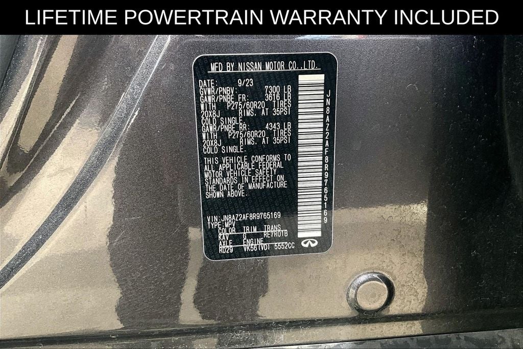 Recent Arrival! CARFAX One-Owner. Certified. Grubbs INFINITI offers this Market Priced Pre-Owned 2024 INFINITI QX80 LUXE in Anthracite Gray with a premium Graphite interior. Fully inspected and all Eligible Vehicles are backed by our exclusive Grubbs Lifetime Powertrain Warranty, it comes loaded with features including INFINITI Certified Pre-Owned Certified, 13 Speakers, 2.937 Axle Ratio, 20 Aluminum Alloy Wheels, 3rd row seats: bench, 4-Wheel Disc Brakes, ABS brakes, Air Conditioning, Alloy wheels, AM/FM radio: SiriusXM, Anti-whiplash front head restraints, Apple CarPlay/Android Auto, Auto High-beam Headlights, Auto tilt-away steering wheel, Auto-dimming door mirrors, Auto-dimming Rear-View mirror, Auto-leveling suspension, Automatic temperature control, Brake assist, Bumpers: body-color, Compass, Delay-off headlights, Driver door bin, Driver vanity mirror, Dual front impact airbags, Dual front side impact airbags, Electronic Stability Control, Emergency communication system: INFINITI InTouch, Fog lights, Four wheel independent suspension, Front anti-roll bar, Front Bucket Seats, Front Center Armrest, Front dual zone A/C, Front reading lights, Fully automatic headlights, Garage door transmitter: HomeLink, Heated door mirrors, Heated Front Bucket Seats, Heated front seats, Heated steering wheel, Illuminated entry, Leather Shift Knob, Leather steering wheel, Leather-Appointed Seats, Literature Kit, Low tire pressure warning, Memory seat, Navigation system: INFINITI InTouch Navigation, Occupant sensing airbag, Outside temperature display, Overhead airbag, Overhead console, Panic alarm, Passenger door bin, Passenger vanity mirror, Power door mirrors, Power driver seat, Power Liftgate, Power moonroof, Power passenger seat, Power steering, Power windows, Radio data system, Radio: Bose Premium Audio System w/13 Speakers, Rain sensing wipers, Rear air conditioning, Rear anti-roll bar, Rear reading lights, Rear seat center armrest, Rear window defroster, Rear window wiper, Reclining 3rd row seat, Remote keyless entry, Security system, Speed control, Speed-sensing steering, Split folding rear seat, Spoiler, Steering wheel memory, Steering wheel mounted audio controls, Tachometer, Telescoping steering wheel, Tilt steering wheel, Traction control, Trip computer, Turn signal indicator mirrors, Variably intermittent wipers, and Voltmeter. 2024 INFINITI QX80 LUXE 4D Sport Utility RWD 5.6L V8 7-Speed Automatic Anthracite Gray Upgraded Wheel Package.