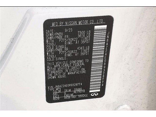Recent Arrival! CARFAX One-Owner. Grubbs INFINITI offers this Market Priced Pre-Owned 2024 INFINITI QX80 Premium Select in Moonstone White with a premium Graphite interior. Fully inspected and all Eligible Vehicles are backed by our exclusive Grubbs Lifetime Powertrain Warranty, it comes loaded with features including QX80 Premium Select, 4D Sport Utility, 5.6L V8, 7-Speed Automatic, 4WD, Moonstone White, Graphite w/Leather-Appointed Seats, and Navigation system: INFINITI InTouch Navigation Cargo Package (Console Net, First-Aid Kit, Moisture-Resistant Rear Cargo Carpet, and Nylon-Cord Cargo Net), QX80 Premium Select, 4D Sport Utility, 5.6L V8, 7-Speed Automatic, 4WD, Moonstone White, Graphite w/Leather-Appointed Seats, Navigation system: INFINITI InTouch Navigation, 13 Speakers, 2.937 Axle Ratio, 3rd row seats: bench, 4-Wheel Disc Brakes, ABS brakes, Air Conditioning, Alloy wheels, AM/FM radio: SiriusXM, Anti-whiplash front head restraints, Apple CarPlay/Android Auto, Auto High-beam Headlights, Auto tilt-away steering wheel, Auto-dimming door mirrors, Auto-dimming Rear-View mirror, Auto-leveling suspension, Automatic temperature control, Brake assist, Bumpers: body-color, Compass, Delay-off headlights, Driver door bin, Driver vanity mirror, Dual front impact airbags, Dual front side impact airbags, Electronic Stability Control, Emergency communication system: INFINITI InTouch, Fog lights, Four wheel independent suspension, Front anti-roll bar, Front Bucket Seats, Front Center Armrest, Front dual zone A/C, Front reading lights, Fully automatic headlights, Garage door transmitter: HomeLink, Heated door mirrors, Heated Front Bucket Seats, Heated front seats, Heated steering wheel, Illuminated entry, Leather Shift Knob, Leather steering wheel, Leather-Appointed Seats, Literature Kit, Low tire pressure warning, Memory seat, Occupant sensing airbag, Outside temperature display, Overhead airbag, Overhead console, Panic alarm, Passenger door bin, Passenger vanity mirror, Power door mirrors, Power driver seat, Power Liftgate, Power moonroof, Power passenger seat, Power steering, Power windows, Premium Select Truffle Brown Interior, Radio data system, Radio: Bose Premium Audio System w/13 Speakers, Rain sensing wipers, Rear air conditioning, Rear anti-roll bar, Rear reading lights, Rear seat center armrest, Rear window defroster, Rear window wiper, Reclining 3rd row seat, Remote keyless entry, Roof Rail Cross Bars, Security system, Speed control, Speed-sensing steering, Split folding rear seat, Spoiler, Steering wheel memory, Steering wheel mounted audio controls, Tachometer, Telescoping steering wheel, Tilt steering wheel, Traction control, Trip computer, Turn signal indicator mirrors, Variably intermittent wipers, Voltmeter, and Wheels: 22 Dark Chrome Cast Aluminum-Alloy. 2024 INFINITI QX80 Premium Select 4D Sport Utility 4WD 5.6L V8 7-Speed Automatic Moonstone White Upgraded Wheel Package, QX80 Premium Select, 4D Sport Utility, 5.6L V8, 7-Speed Automatic, 4WD, Moonstone White, Graphite w/Leather-Appointed Seats, Navigation system: INFINITI InTouch Navigation.
