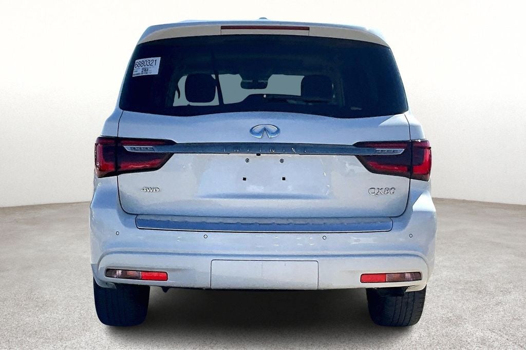 Recent Arrival! CARFAX One-Owner. Certified. Grubbs INFINITI offers this Market Priced Pre-Owned 2024 INFINITI QX80 Premium Select in Moonstone White with a premium Truffle Brown interior. Fully inspected and all Eligible Vehicles are backed by our exclusive Grubbs Lifetime Powertrain Warranty, it comes loaded with features including Cargo Package (Console Net, First-Aid Kit, Moisture-Resistant Rear Cargo Carpet, and Nylon-Cord Cargo Net), INFINITI Certified Pre-Owned Certified, 13 Speakers, 2.937 Axle Ratio, 3rd row seats: bench, 4-Wheel Disc Brakes, ABS brakes, Air Conditioning, Alloy wheels, AM/FM radio: SiriusXM, Anti-whiplash front head restraints, Apple CarPlay/Android Auto, Auto High-beam Headlights, Auto tilt-away steering wheel, Auto-dimming door mirrors, Auto-dimming Rear-View mirror, Auto-leveling suspension, Automatic temperature control, Brake assist, Bumpers: body-color, Compass, Delay-off headlights, Driver door bin, Driver vanity mirror, Dual front impact airbags, Dual front side impact airbags, Electronic Stability Control, Emergency communication system: INFINITI InTouch, Fog lights, Four wheel independent suspension, Front anti-roll bar, Front Bucket Seats, Front Center Armrest, Front dual zone A/C, Front reading lights, Fully automatic headlights, Garage door transmitter: HomeLink, Heated door mirrors, Heated Front Bucket Seats, Heated front seats, Heated steering wheel, Illuminated entry, Leather Shift Knob, Leather steering wheel, Leather-Appointed Seats, Literature Kit, Low tire pressure warning, Memory seat, Navigation system: INFINITI InTouch Navigation, Occupant sensing airbag, Outside temperature display, Overhead airbag, Overhead console, Panic alarm, Passenger door bin, Passenger vanity mirror, Power door mirrors, Power driver seat, Power Liftgate, Power moonroof, Power passenger seat, Power steering, Power windows, Premium Select Truffle Brown Interior, Radio data system, Radio: Bose Premium Audio System w/13 Speakers, Rain sensing wipers, Rear air conditioning, Rear anti-roll bar, Rear reading lights, Rear seat center armrest, Rear window defroster, Rear window wiper, Reclining 3rd row seat, Remote keyless entry, Roof Rail Cross Bars, Security system, Speed control, Speed-sensing steering, Split folding rear seat, Spoiler, Steering wheel memory, Steering wheel mounted audio controls, Tachometer, Telescoping steering wheel, Tilt steering wheel, Traction control, Trip computer, Turn signal indicator mirrors, Variably intermittent wipers, Voltmeter, and Wheels: 22 Dark Chrome Cast Aluminum-Alloy. 2024 INFINITI QX80 Premium Select 4D Sport Utility 4WD 5.6L V8 7-Speed Automatic Moonstone White Upgraded Wheel Package.