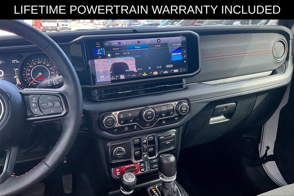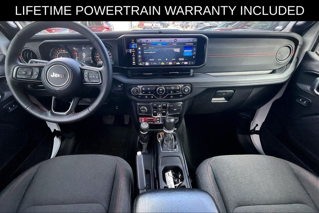 Recent Arrival! Grubbs INFINITI offers this Market Priced Pre-Owned 2024 Jeep Gladiator Rubicon in Bright White Clearcoat with a premium Black interior. Fully inspected and all Eligible Vehicles are backed by our exclusive Grubbs Lifetime Powertrain Warranty, it comes loaded with features including Convenience Group (Emergency/Assistance Call, Heated Front Seats, Heated Steering Wheel, Remote Start System, SiriusXM Radio Service, SiriusXM w/360L, and Universal Garage Door Opener), Quick Order Package 24R Rubicon, Steel Bumper Group (Steel Front Bumper), 12.3 Touchscreen Display, 4-Wheel Disc Brakes, 4.10 Rear Axle Ratio, 4G LTE Wi-Fi Hot Spot, 8 Speakers, 97 MPH Vehicle Max Speed Calibration, ABS brakes, Air Conditioning, Alexa Built-In, Alloy wheels, AM/FM radio: SiriusXM with 360L, Apple CarPlay, Apple CarPlay/Android Auto, Automatic temperature control, Brake assist, Cloth Low-Back Bucket Seats, Compass, Connectivity - US/Canada, Delay-off headlights, Driver door bin, Driver vanity mirror, Dual front impact airbags, Dual front side impact airbags, Electronic Stability Control, Emergency communication system: Jeep Connect, Fog lights, Front anti-roll bar, Front Bucket Seats, Front Center Armrest w/Storage, Front dual zone A/C, Front reading lights, Fully automatic headlights, Google Android Auto, Heated door mirrors, Illuminated entry, Integrated Center Stack Radio, Integrated roll-over protection, Low tire pressure warning, MOPAR All-Weather Slush Mats, MOPAR Spray In Bedliner, Occupant sensing airbag, Outside temperature display, Overhead airbag, Panic alarm, Passenger door bin, Passenger vanity mirror, Performance Suspension, Power door mirrors, Power steering, Power windows, Radio data system, Radio: Uconnect 5 w/12.3 Display, Rear anti-roll bar, Rear reading lights, Remote keyless entry, Security system, Speed control, Split folding rear seat, Steering wheel mounted audio controls, Tachometer, Telescoping steering wheel, Tilt steering wheel, Traction control, Trip computer, USB Host Flip, Variably intermittent wipers, Voltmeter, and Wheels: 17 x 7.5 Machined/Painted Black. 2024 Jeep Gladiator Rubicon 4D Crew Cab 4WD 3.6L V6 24V VVT 8-Speed Automatic Bright White Clearcoat Upgraded Wheel Package.