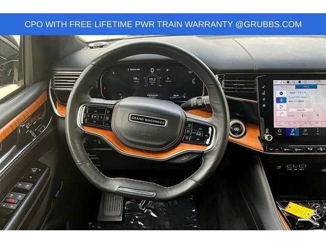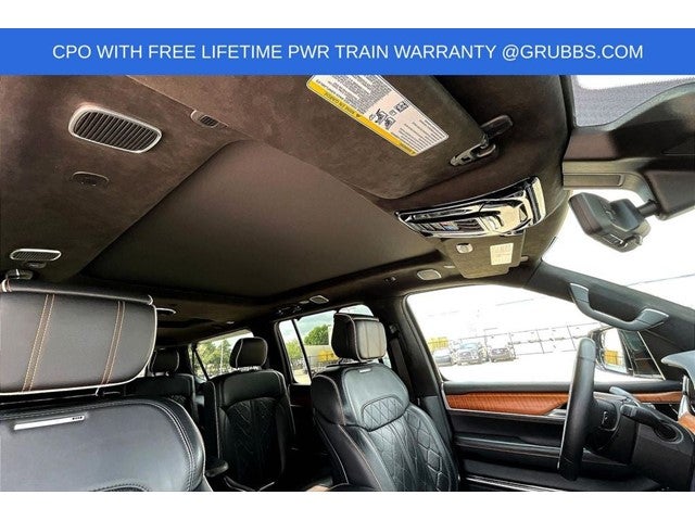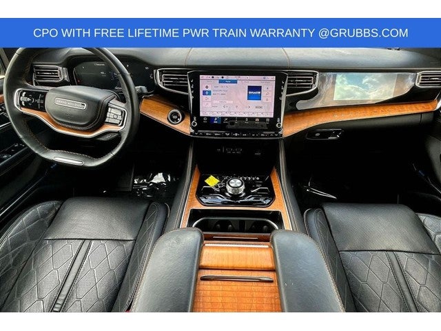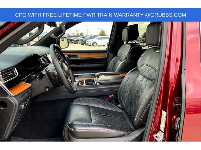 New Price! CARFAX One-Owner. Grubbs INFINITI offers this Market Priced Pre-Owned 2024 Jeep Grand Wagoneer L Series III in Velvet Red Pearlcoat with a premium Global Black interior. Fully inspected and all Eligible Vehicles are backed by our exclusive Grubbs Lifetime Powertrain Warranty, it comes loaded with features including Quick Order Package 28W, Two Tone Paint Group, 3rd row seats: bench, 4-Wheel Disc Brakes, ABS brakes, Adjustable pedals, Air Conditioning, AM/FM radio: SiriusXM with 360L, Anti-whiplash front head restraints, Apple CarPlay/Android Auto, Audio memory, Auto High-beam Headlights, Auto-dimming door mirrors, Auto-dimming Rear-View mirror, Auto-leveling suspension, Automatic temperature control, Black Roof, Brake assist, Bumpers: body-color, Compass, Delay-off headlights, Driver door bin, Driver vanity mirror, Driver's Seat Mounted Armrest, Dual front impact airbags, Dual front side impact airbags, Electronic Stability Control, Emergency communication system, Fog lights, Four wheel independent suspension, Front anti-roll bar, Front Bucket Seats, Front Center Armrest w/Storage, Front dual zone A/C, Front reading lights, Fully automatic headlights, Garage door transmitter, Genuine wood console insert, Genuine wood dashboard insert, Genuine wood door panel insert, Heads-Up Display, Heated door mirrors, Heated front seats, Heated rear seats, Heated steering wheel, Illuminated entry, Knee airbag, Leather steering wheel, Low tire pressure warning, Memory seat, Navigation System, Night vision lights, Normal Duty Suspension, Occupant sensing airbag, Outside temperature display, Overhead airbag, Overhead console, Panic alarm, Passenger door bin, Passenger seat mounted armrest, Passenger vanity mirror, Pedal memory, Power adjustable front head restraints, Power door mirrors, Power driver seat, Power Liftgate, Power moonroof, Power passenger seat, Power steering, Power windows, Premium Leather Trimmed Bucket Seats, Radio data system, Radio: Uconnect 5 Nav w/12.0 Display, Rain sensing wipers, Rear air conditioning, Rear anti-roll bar, Rear dual zone A/C, Rear reading lights, Rear seat center armrest, Rear window defroster, Rear window wiper, Reclining 3rd row seat, Remote keyless entry, Roof rack, Security system, Speed control, Speed-sensing steering, Speed-Sensitive Wipers, Split folding rear seat, Steering wheel memory, Steering wheel mounted audio controls, Tachometer, Telescoping steering wheel, Tilt steering wheel, Traction control, Trip computer, Turn signal indicator mirrors, Variably intermittent wipers, Ventilated front seats, Ventilated rear seats, Voltmeter, and Wheels: 22 x 9.0 Premium 4 Aluminum. 2024 Jeep Grand Wagoneer L Series III 4D Sport Utility 4WD 3.0L I6 8-Speed Automatic Velvet Red Pearlcoat