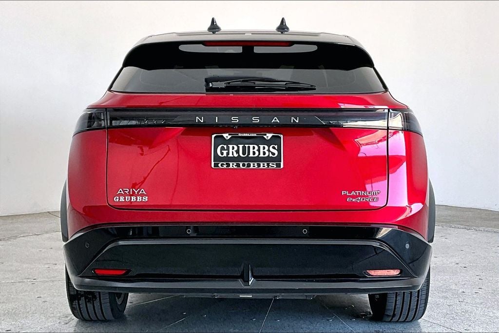 New Price! Recent Arrival! CARFAX One-Owner. Grubbs INFINITI offers this Market Priced Pre-Owned 2024 Nissan Ariya PLATINUM+ e-4ORCE in Passion Red Tricoat/Black Diamond Pearl with a premium Blue Gray interior. Fully inspected and all Eligible Vehicles are backed by our exclusive Grubbs Lifetime Powertrain Warranty, it comes loaded with features including 10 Speakers, 20 Alloy Wheels, 4-Wheel Disc Brakes, ABS brakes, Air Conditioning, AM/FM radio: SiriusXM, Auto High-beam Headlights, Automatic temperature control, Brake assist, Bumpers: body-color, Carpeted Floor Mats & First Aid Kit, Delay-off headlights, Driver door bin, Driver vanity mirror, Dual front impact airbags, Dual front side impact airbags, Electronic Stability Control, Emergency communication system: NissanConnect EV & Services, Exterior Ground Lighting, Fog lights, Four wheel independent suspension, Front anti-roll bar, Front Bucket Seats, Front Center Armrest, Front dual zone A/C, Front reading lights, Garage door transmitter: HomeLink, Heads-Up Display, Heated & Cooled Front Bucket Seats, Heated door mirrors, Heated front seats, Heated rear seats, Heated steering wheel, Illuminated entry, Illuminated Kick Plates, Knee airbag, Leather steering wheel, Low tire pressure warning, Memory seat, Nappa Leather Seating Surfaces, Navigation system: Nissan Door to Door Connected Navigation, Occupant sensing airbag, Outside temperature display, Overhead airbag, Panic alarm, Passenger door bin, Passenger vanity mirror, Power door mirrors, Power driver seat, Power Liftgate, Power moonroof, Power passenger seat, Power steering, Power windows, Radio: Bose Premium Audio System w/AM/FM, Rain sensing wipers, Rear anti-roll bar, Rear reading lights, Rear seat center armrest, Rear side impact airbag, Rear window defroster, Rear window wiper, Remote keyless entry, Security system, Special Paint - Passion Red/Black Diamond, Speed control, Speed-sensing steering, Speed-Sensitive Wipers, Split folding rear seat, Spoiler, Steering wheel memory, Steering wheel mounted audio controls, Telescoping steering wheel, Tilt steering wheel, Traction control, Trip computer, Turn signal indicator mirrors, Variably intermittent wipers, and Ventilated front seats. 2024 Nissan Ariya PLATINUM+ e-4ORCE 4D Sport Utility AWD Electric Motor CVT Passion Red Tricoat/Black Diamond Pearl