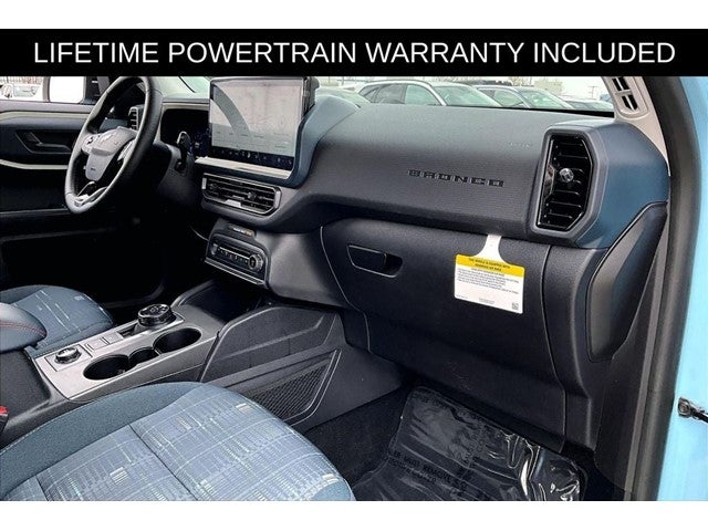 Recent Arrival! Grubbs INFINITI offers this Market Priced Pre-Owned 2025 Ford Bronco Sport Heritage in Blue with a premium Navy Pier interior. Fully inspected and all Eligible Vehicles are backed by our exclusive Grubbs Lifetime Powertrain Warranty, it comes loaded with features including Convenience Package (Front Driver/Passenger Seat Back Map Pockets, Heated 8-Way Power Driver's Seat, LED Fog Lamps, Premium Wrapped Steering Wheel, and Universal Garage Door Opener (UGDO)), Equipment Group 250A, 4-Wheel Disc Brakes, 6 Speakers, ABS brakes, Air Conditioning, Alloy wheels, AM/FM radio: SiriusXM, AM/FM Stereo, Auto High-beam Headlights, Automatic temperature control, Brake assist, Compass, Delay-off headlights, Driver door bin, Driver vanity mirror, Dual front impact airbags, Dual front side impact airbags, Electronic Stability Control, Emergency communication system: SYNC 4 911 Assist, Four wheel independent suspension, Front anti-roll bar, Front Bucket Seats, Front Center Armrest, Front License Plate Bracket, Front reading lights, Fully automatic headlights, Heated door mirrors, Illuminated entry, Knee airbag, Low tire pressure warning, Occupant sensing airbag, Outside temperature display, Overhead airbag, Overhead console, Panic alarm, Passenger door bin, Passenger vanity mirror, Plaid Cloth Front Bucket Seats, Power door mirrors, Power steering, Power windows, Radio data system, Rear anti-roll bar, Rear Parking Sensors, Rear reading lights, Rear seat center armrest, Rear window defroster, Rear window wiper, Remote keyless entry, Security system, SiriusXM, Speed control, Speed-sensing steering, Speed-Sensitive Wipers, Split folding rear seat, Steering wheel mounted audio controls, SYNC 4 w/Enhanced Voice Recognition, Tachometer, Telescoping steering wheel, Tilt steering wheel, Traction control, Trip computer, Variably intermittent wipers, and Wheels: 17 Oxford White-Painted Aluminum. 2025 Ford Bronco Sport Heritage 4D Sport Utility 4WD 1.5L EcoBoost 8-Speed Automatic Blue Upgraded Wheel Package.