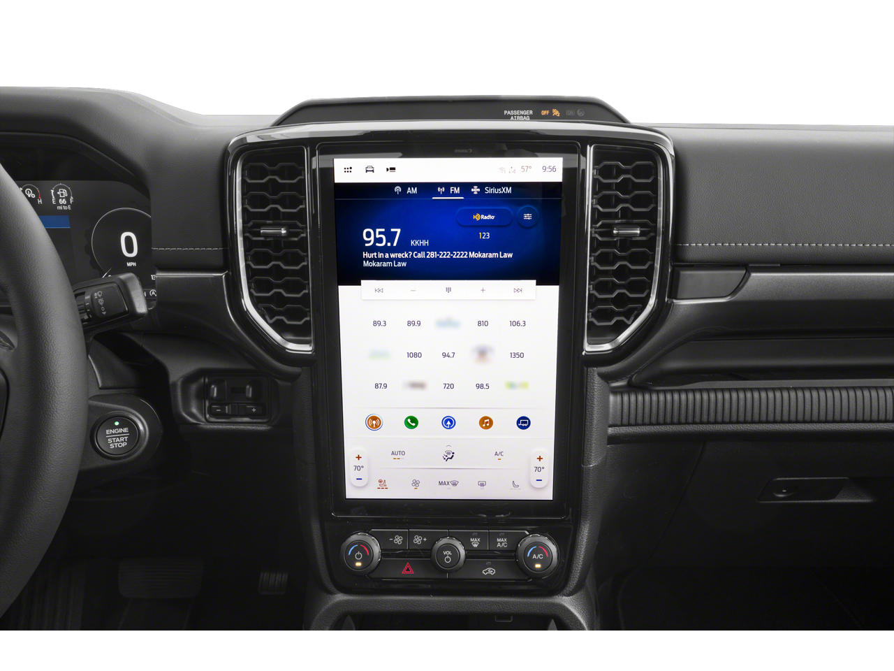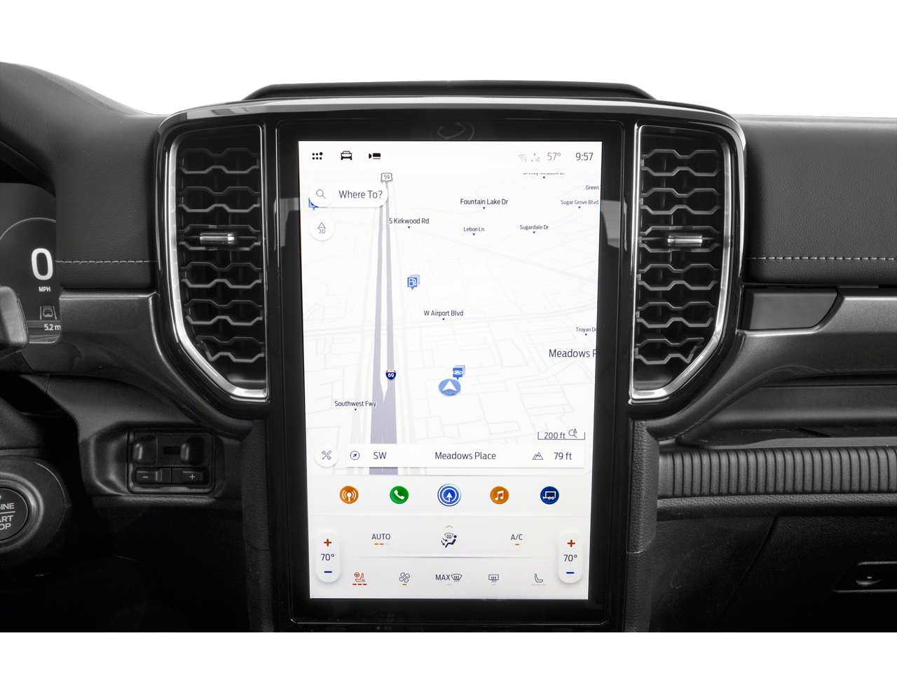 Inside, the Ranger Lariat offers a wealth of premium features to enhance your driving experience. The Leather-Trimmed Front Heated Bucket Seats provide unparalleled comfort, while the Heated Steering Wheel and Heated 2nd Row Seats ensure everyone stays cozy. The SYNC 4A with Connected Navigation system keeps you connected and in control, and the 360° View Parking Camera makes maneuvering a breeze.