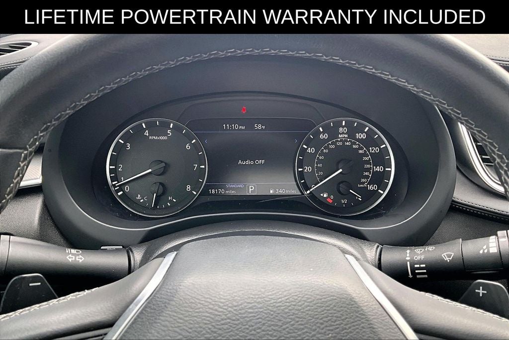 New Price! Certified. Grubbs INFINITI offers this Market Priced Pre-Owned 2025 INFINITI QX55 LUXE in Black Obsidian with a premium Graphite interior. Fully inspected and all Eligible Vehicles are backed by our exclusive Grubbs Lifetime Powertrain Warranty, it comes loaded with features including Cargo Package (Black Film Rear Bumper Protector, Cargo Net, and Reversible Cargo Mat), INFINITI Certified Pre-Owned Certified, 4-Wheel Disc Brakes, 6 Speakers, ABS brakes, Air Conditioning, Alloy wheels, AM/FM radio: SiriusXM, Auto High-beam Headlights, Auto-dimming Rear-View mirror, Automatic temperature control, Black Splash Guards (Set of 4), Brake assist, Bumpers: body-color, CD player, Delay-off headlights, Driver door bin, Driver vanity mirror, Dual front impact airbags, Dual front side impact airbags, Electronic Stability Control, Emergency communication system: INFINITI InTouch, Exterior Parking Camera Rear, Fog lights, Four wheel independent suspension, Front anti-roll bar, Front Bucket Seats, Front Center Armrest, Front dual zone A/C, Front reading lights, Fully automatic headlights, Garage door transmitter, Heated door mirrors, Heated Front Bucket Seats, Heated front seats, Illuminated entry, Knee airbag, Leather Shift Knob, Leather steering wheel, Leather-Appointed Seat Trim, Low tire pressure warning, Memory seat, Occupant sensing airbag, Outside temperature display, Overhead airbag, Overhead console, Panic alarm, Passenger door bin, Passenger vanity mirror, Power door mirrors, Power driver seat, Power Liftgate, Power moonroof, Power passenger seat, Power steering, Power windows, Radio data system, Radio: AM/FM Audio System, Rear anti-roll bar, Rear Parking Sensors, Rear reading lights, Rear seat center armrest, Rear side impact airbag, Rear window defroster, Rear window wiper, Remote keyless entry, Security system, Speed control, Speed-sensing steering, Speed-Sensitive Wipers, Split folding rear seat, Spoiler, Steering wheel mounted audio controls, Tachometer, Telescoping steering wheel, Tilt steering wheel, Traction control, Trip computer, Turn signal indicator mirrors, Variably intermittent wipers, and Wheels: 8.5J x 20 Machine Finished Aluminum Alloy. 2025 INFINITI QX55 LUXE 4D Sport Utility AWD I4 CVT Black Obsidian