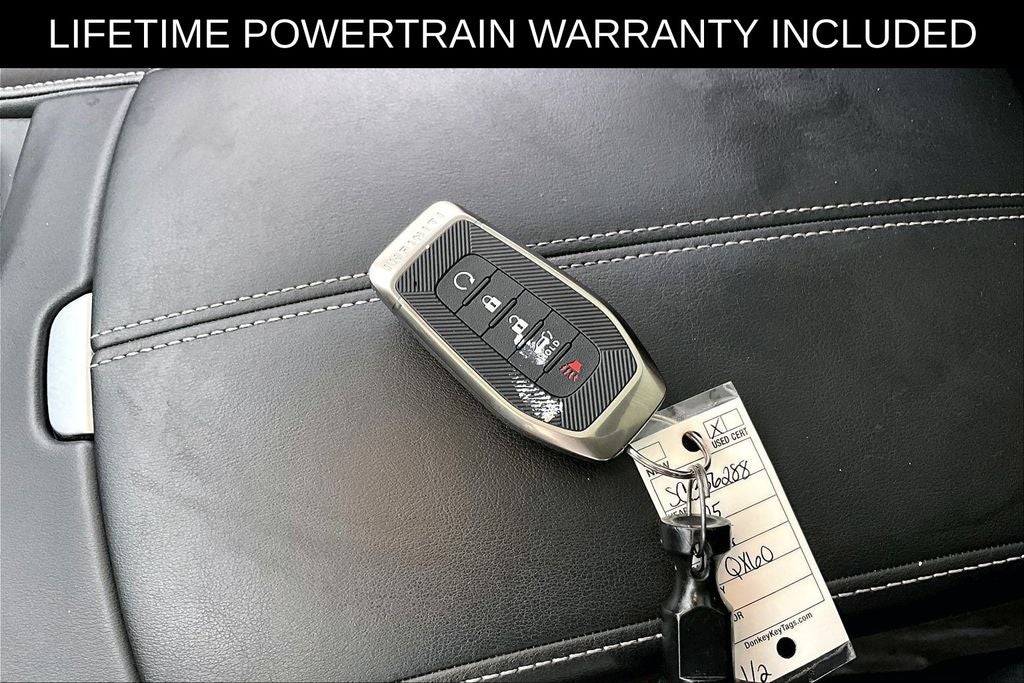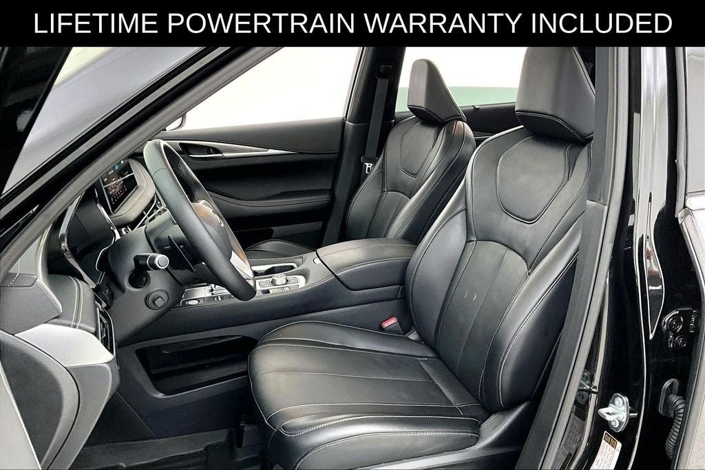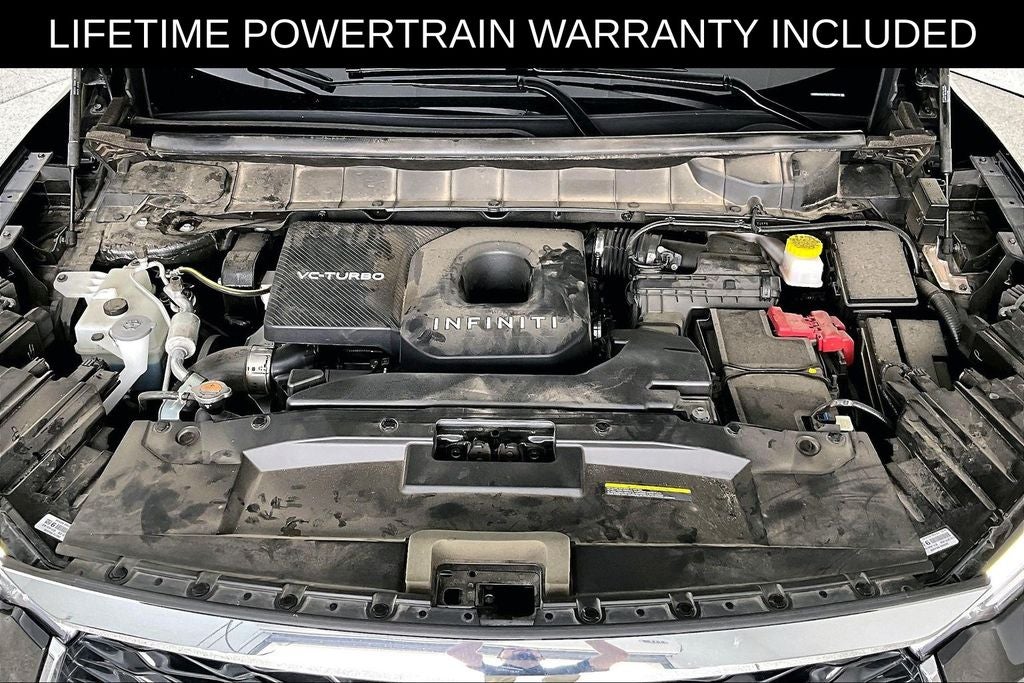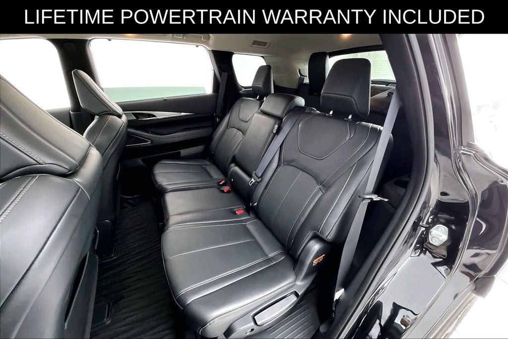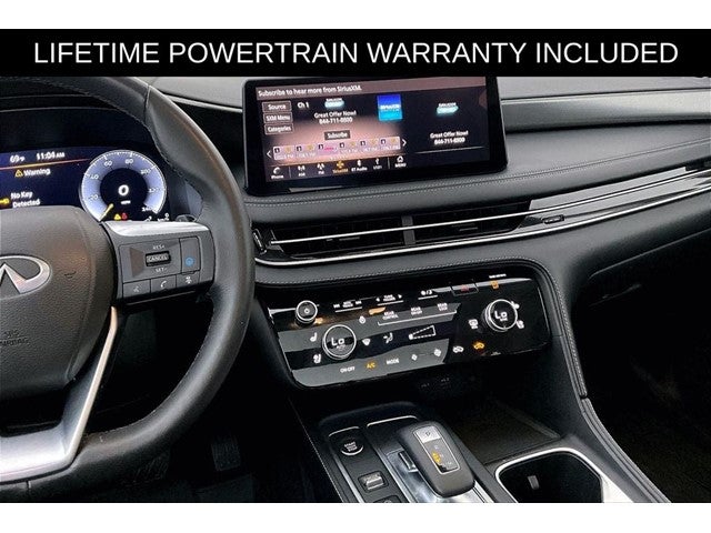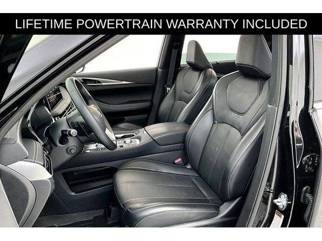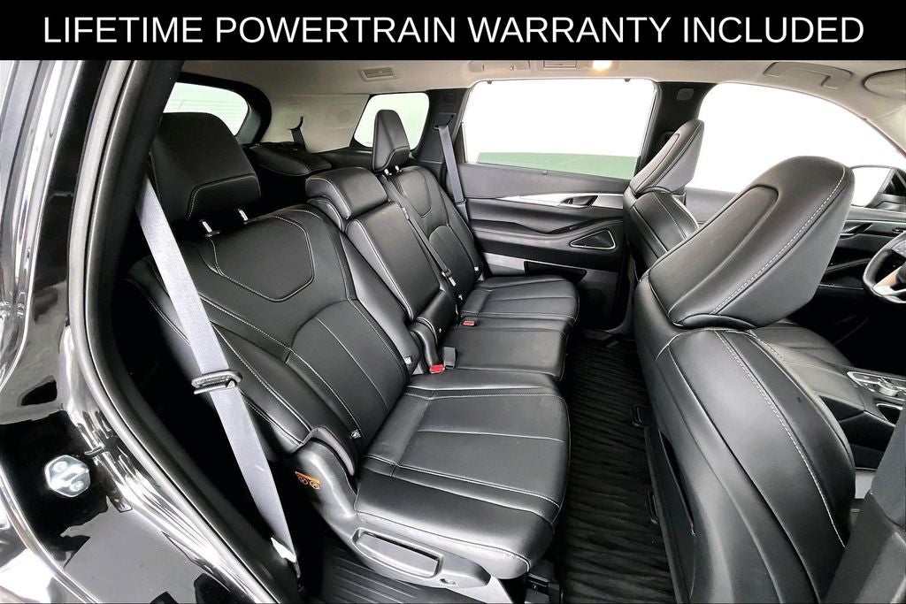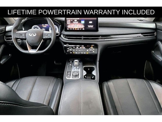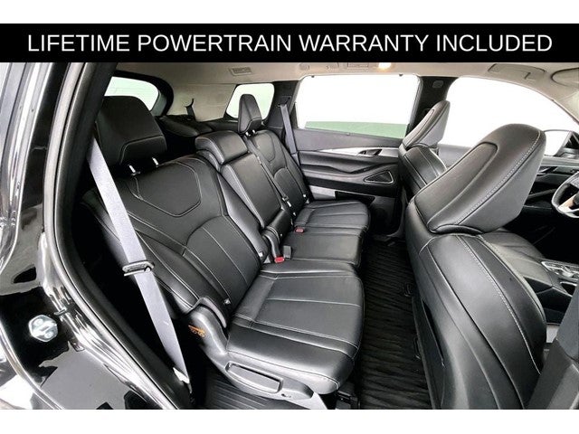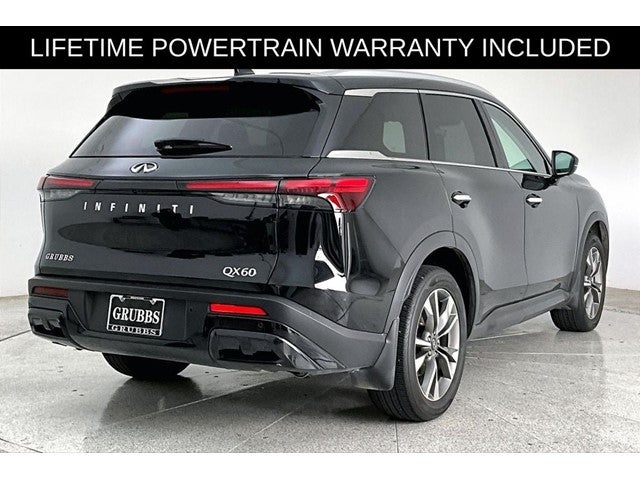 Certified. Grubbs INFINITI offers this Market Priced Pre-Owned 2025 INFINITI QX60 LUXE in Mineral Black with a premium Graphite interior. Fully inspected and all Eligible Vehicles are backed by our exclusive Grubbs Lifetime Powertrain Warranty, it comes loaded with features including INFINITI Certified Pre-Owned Certified, 17 Speakers, 3rd row seats: bench, 4-Wheel Disc Brakes, ABS brakes, Air Conditioning, Alloy wheels, AM/FM radio: SiriusXM, Anti-whiplash front head restraints, Apple CarPlay/Android Auto, Auto High-beam Headlights, Auto tilt-away steering wheel, Auto-dimming door mirrors, Auto-dimming Rear-View mirror, Automatic temperature control, Bose Performance Series 17-Speaker Sound System, Brake assist, Bumpers: body-color, Climate Controlled Front Bucket Seats, Delay-off headlights, Driver door bin, Driver vanity mirror, Dual front impact airbags, Dual front side impact airbags, Electronic Stability Control, Emergency communication system: INFINITI InTouch, Exterior Parking Camera Rear, Four wheel independent suspension, Front anti-roll bar, Front Bucket Seats, Front Center Armrest, Front dual zone A/C, Front reading lights, Fully automatic headlights, Garage door transmitter: HomeLink, Heated door mirrors, Heated front seats, Heated rear seats, Heated steering wheel, Illuminated entry, Knee airbag, Leather Shift Knob, Leather steering wheel, Leather-Appointed Seating Surfaces, Low tire pressure warning, Memory seat, Navigation system: INFINITI InTouch Navigation, Occupant sensing airbag, Outside temperature display, Overhead airbag, Overhead console, Panic alarm, Passenger door bin, Passenger vanity mirror, Power door mirrors, Power driver seat, Power Liftgate, Power moonroof, Power passenger seat, Power steering, Power windows, Radio data system, Radio: Bose Performance Series, Rain sensing wipers, Rear air conditioning, Rear anti-roll bar, Rear reading lights, Rear seat center armrest, Rear side impact airbag, Rear window defroster, Rear window wiper, Reclining 3rd row seat, Remote keyless entry, Security system, Speed control, Speed-sensing steering, Speed-Sensitive Wipers, Split folding rear seat, Spoiler, Steering wheel memory, Steering wheel mounted audio controls, Tachometer, Telescoping steering wheel, Tilt steering wheel, Traction control, Trip computer, Turn signal indicator mirrors, Variably intermittent wipers, Ventilated front seats, and Wheels: 20 x 8J Sporty Machined Aluminum Alloy. 2025 INFINITI QX60 LUXE 4D Sport Utility FWD 2.0L I4 Turbocharged DOHC 16V LEV3-ULEV50 268hp 9-Speed Automatic Mineral Black Upgraded Wheel Package.