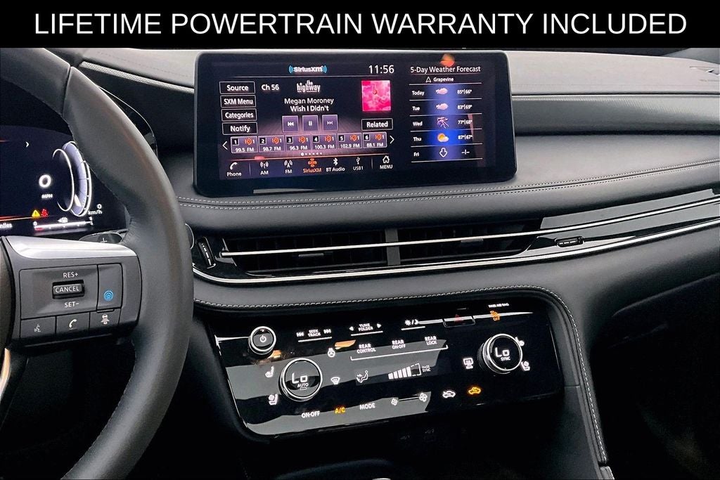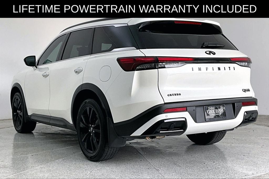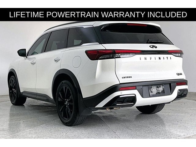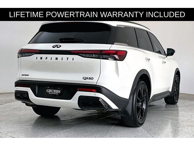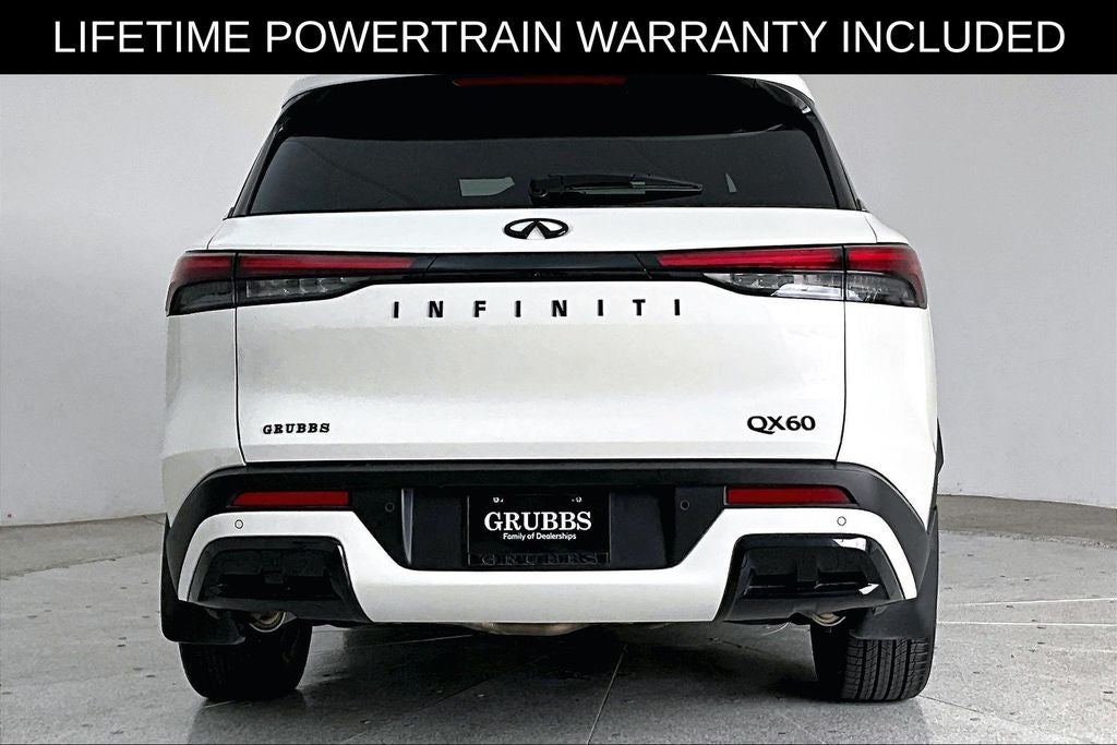 Grubbs INFINITI The only Authorized INFINITI Dealer in Grapevine. With one of the largest New and Pre-Owned INFINITI Selection in the area. This 2025 INFINITI QX60 LUXE comes with 3 Year INFINITI Recommended Maintenance Included at no charge and is loaded with the following Factory Options: 17 Speakers, 3rd row seats: bench, 4-Wheel Disc Brakes, ABS brakes, Air Conditioning, Alloy wheels, AM/FM radio: SiriusXM, Anti-whiplash front head restraints, Apple CarPlay/Android Auto, Auto High-beam Headlights, Auto tilt-away steering wheel, Auto-dimming door mirrors, Auto-dimming Rear-View mirror, Automatic temperature control, Bose Performance Series 17-Speaker Sound System, Brake assist, Bumpers: body-color, Climate Controlled Front Bucket Seats, Delay-off headlights, Driver door bin, Driver vanity mirror, Dual front impact airbags, Dual front side impact airbags, Electronic Stability Control, Emergency communication system: INFINITI InTouch, Exterior Parking Camera Rear, Four wheel independent suspension, Front anti-roll bar, Front Bucket Seats, Front Center Armrest, Front dual zone A/C, Front reading lights, Fully automatic headlights, Garage door transmitter: HomeLink, Heated door mirrors, Heated front seats, Heated rear seats, Heated steering wheel, Illuminated entry, Knee airbag, Leather Shift Knob, Leather steering wheel, Leather-Appointed Seating Surfaces, Low tire pressure warning, Memory seat, Navigation system: INFINITI InTouch Navigation, Occupant sensing airbag, Outside temperature display, Overhead airbag, Overhead console, Panic alarm, Passenger door bin, Passenger vanity mirror, Power door mirrors, Power driver seat, Power Liftgate, Power moonroof, Power passenger seat, Power steering, Power windows, Radio data system, Radio: Bose Performance Series, Rain sensing wipers, Rear air conditioning, Rear anti-roll bar, Rear reading lights, Rear seat center armrest, Rear side impact airbag, Rear window defroster, Rear window wiper, Reclining 3rd row seat, Remote keyless entry, Security system, Speed control, Speed-sensing steering, Speed-Sensitive Wipers, Split folding rear seat, Spoiler, Steering wheel memory, Steering wheel mounted audio controls, Tachometer, Telescoping steering wheel, Tilt steering wheel, Traction control, Trip computer, Turn signal indicator mirrors, Variably intermittent wipers, Ventilated front seats, and Wheels: 20 x 8J Sporty Machined Aluminum Alloy!!