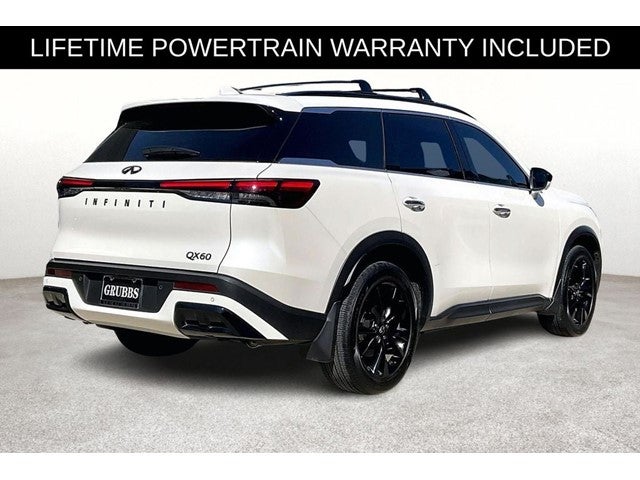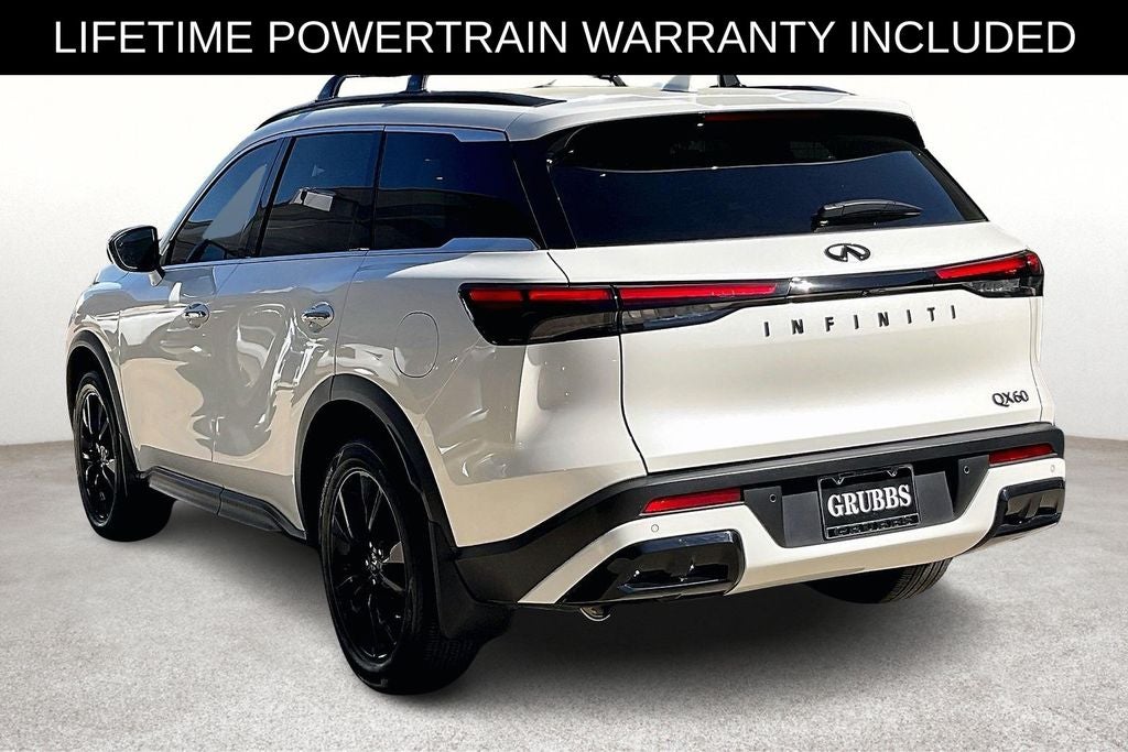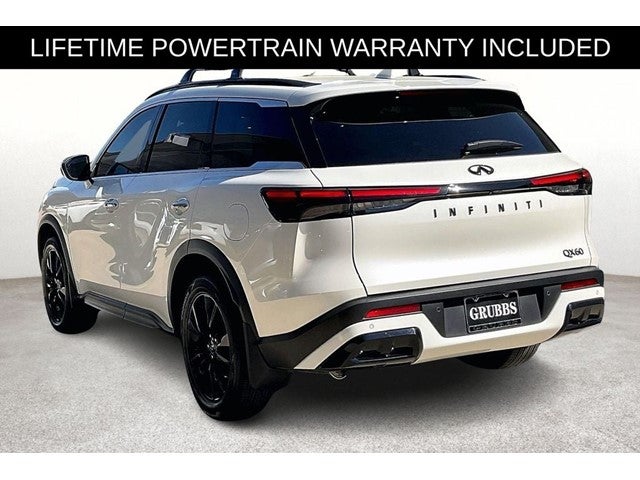 Grubbs INFINITI The only Authorized INFINITI Dealer in Grapevine. With one of the largest New and Pre-Owned INFINITI Selection in the area. This 2025 INFINITI QX60 LUXE comes with 3 Year INFINITI Recommended Maintenance Included at no charge and is loaded with the following Factory Options: 17 Speakers, 3rd row seats: bench, 4-Wheel Disc Brakes, ABS brakes, Air Conditioning, Alloy wheels, AM/FM radio: SiriusXM, Anti-whiplash front head restraints, Apple CarPlay/Android Auto, Auto High-beam Headlights, Auto tilt-away steering wheel, Auto-dimming door mirrors, Auto-dimming Rear-View mirror, Automatic temperature control, Bose Performance Series 17-Speaker Sound System, Brake assist, Bumpers: body-color, Climate Controlled Front Bucket Seats, Delay-off headlights, Driver door bin, Driver vanity mirror, Dual front impact airbags, Dual front side impact airbags, Electronic Stability Control, Emergency communication system: INFINITI InTouch, Exterior Parking Camera Rear, Four wheel independent suspension, Front anti-roll bar, Front Bucket Seats, Front Center Armrest, Front dual zone A/C, Front reading lights, Fully automatic headlights, Garage door transmitter: HomeLink, Heated door mirrors, Heated front seats, Heated rear seats, Heated steering wheel, Illuminated entry, Knee airbag, Leather Shift Knob, Leather steering wheel, Leather-Appointed Seating Surfaces, Low tire pressure warning, Memory seat, Navigation system: INFINITI InTouch Navigation, Occupant sensing airbag, Outside temperature display, Overhead airbag, Overhead console, Panic alarm, Passenger door bin, Passenger vanity mirror, Power door mirrors, Power driver seat, Power Liftgate, Power moonroof, Power passenger seat, Power steering, Power windows, Radio data system, Radio: Bose Performance Series, Rain sensing wipers, Rear air conditioning, Rear anti-roll bar, Rear reading lights, Rear seat center armrest, Rear side impact airbag, Rear window defroster, Rear window wiper, Reclining 3rd row seat, Remote keyless entry, Security system, Speed control, Speed-sensing steering, Speed-Sensitive Wipers, Split folding rear seat, Spoiler, Steering wheel memory, Steering wheel mounted audio controls, Tachometer, Telescoping steering wheel, Tilt steering wheel, Traction control, Trip computer, Turn signal indicator mirrors, Variably intermittent wipers, Ventilated front seats, and Wheels: 20 x 8J Sporty Machined Aluminum Alloy!!