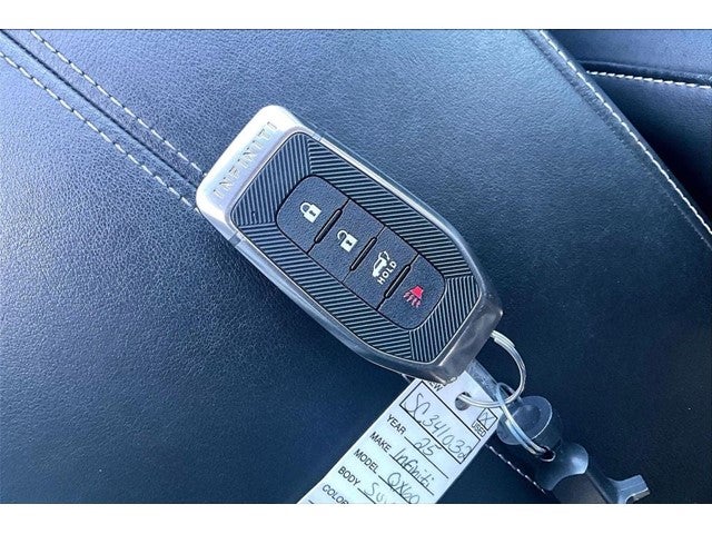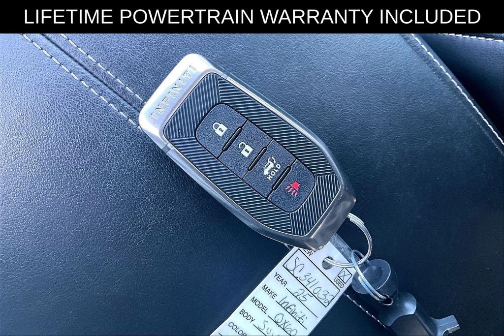 Certified. Grubbs INFINITI offers this Market Priced Pre-Owned 2025 INFINITI QX60 PURE in Mineral Black with a premium Graphite interior. Fully inspected and all Eligible Vehicles are backed by our exclusive Grubbs Lifetime Powertrain Warranty, it comes loaded with features including INFINITI Certified Pre-Owned Certified, 3rd row seats: bench, 4-Wheel Disc Brakes, 9 Speakers, ABS brakes, Air Conditioning, Alloy wheels, AM/FM radio: SiriusXM, Anti-whiplash front head restraints, Apple CarPlay/Android Auto, Auto High-beam Headlights, Auto-dimming Rear-View mirror, Automatic temperature control, Blind Spot Warning, Brake assist, Bumpers: body-color, Delay-off headlights, Driver door bin, Driver vanity mirror, Dual front impact airbags, Dual front side impact airbags, Electronic Stability Control, Emergency communication system: INFINITI InTouch, Floor Mats w/Bench Seats on 3rd Row Tray, Four wheel independent suspension, Front anti-roll bar, Front Bucket Seats, Front Center Armrest, Front dual zone A/C, Front reading lights, Fully automatic headlights, Heated door mirrors, Heated Front Bucket Seats, Heated front seats, Heated steering wheel, Illuminated entry, Knee airbag, Leather Shift Knob, Leather steering wheel, Leather-Appointed Seating Surfaces, Literature Kit, Low tire pressure warning, Memory seat, Occupant sensing airbag, Outside temperature display, Overhead airbag, Overhead console, Panic alarm, Passenger door bin, Passenger vanity mirror, Power door mirrors, Power driver seat, Power Liftgate, Power moonroof, Power passenger seat, Power steering, Power windows, Premium Paint, Radio data system, Radio: AM/FM Audio System, Rain sensing wipers, Rear air conditioning, Rear anti-roll bar, Rear Parking Sensors, Rear reading lights, Rear seat center armrest, Rear side impact airbag, Rear window defroster, Rear window wiper, Reclining 3rd row seat, Remote keyless entry, Security system, Speed control, Speed-sensing steering, Speed-Sensitive Wipers, Splash Guards, Split folding rear seat, Spoiler, Steering wheel mounted audio controls, Tachometer, Telescoping steering wheel, Tilt steering wheel, Traction control, Trip computer, Turn signal indicator mirrors, USB Charging Cable Set - INFINITI, Variably intermittent wipers, and Wheels: 18 x 8J Machined Aluminum Alloy. 2025 INFINITI QX60 PURE 4D Sport Utility FWD 2.0L I4 Turbocharged DOHC 16V LEV3-ULEV50 268hp 9-Speed Automatic Mineral Black Upgraded Wheel Package.