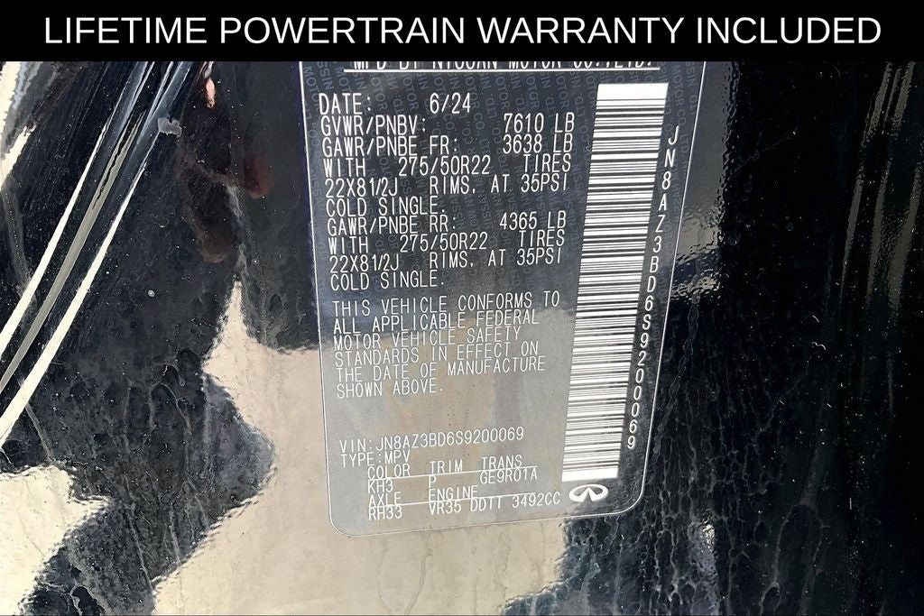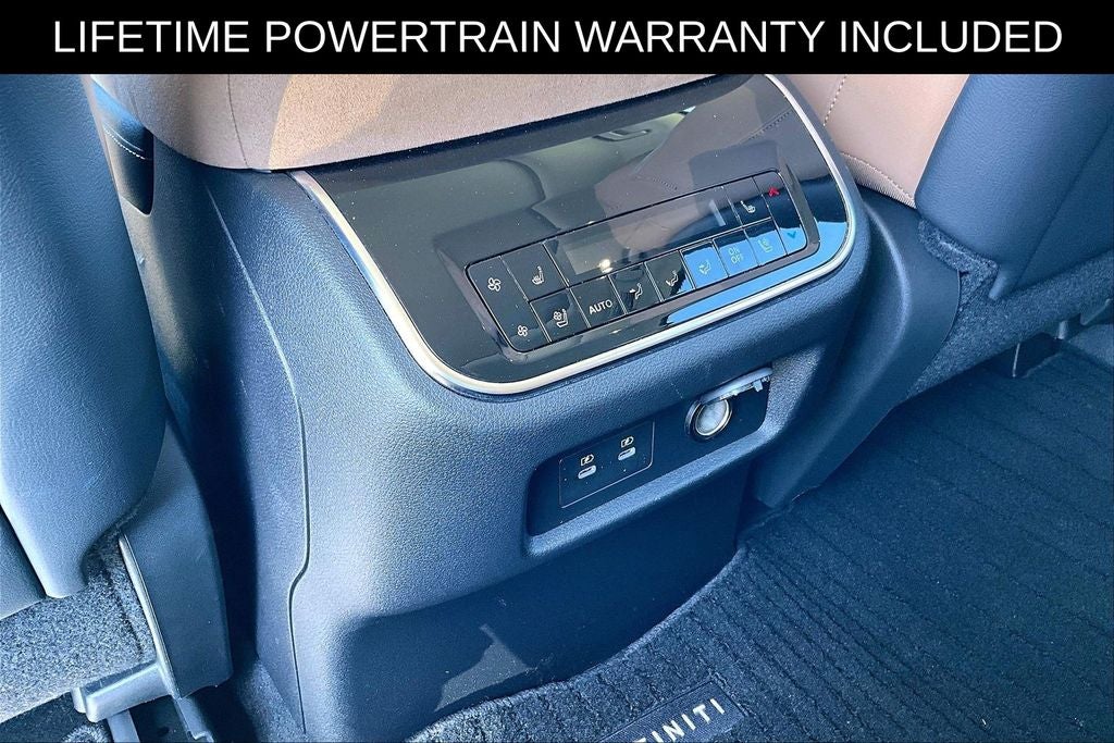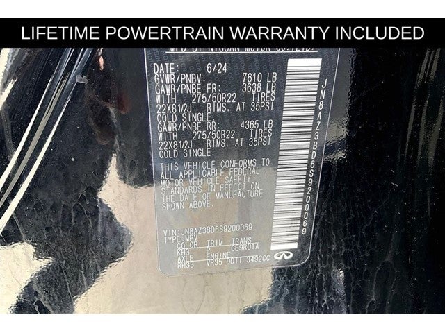 Recent Arrival! CARFAX One-Owner. Certified. Grubbs INFINITI offers this Market Priced Pre-Owned 2025 INFINITI QX80 LUXE in Black Obsidian with a premium Sepia Brown interior. Fully inspected and all Eligible Vehicles are backed by our exclusive Grubbs Lifetime Powertrain Warranty, it comes loaded with features including Split Bench Seat Package, INFINITI Certified Pre-Owned Certified, 14 Speakers, 3rd row seats: bench, 4-Wheel Disc Brakes, ABS brakes, Adaptive suspension, Air Conditioning, Alloy wheels, AM/FM radio: SiriusXM with 360L, Anti-whiplash front head restraints, Apple CarPlay/Android Auto, Audio memory, Auto High-beam Headlights, Auto tilt-away steering wheel, Auto-dimming door mirrors, Auto-dimming Rear-View mirror, Auto-leveling suspension, Automatic temperature control, Brake assist, Bumpers: body-color, Center Front Spoiler, Climate Controlled Front Bucket Seats, Compass, Delay-off headlights, Driver door bin, Driver vanity mirror, Dual front impact airbags, Dual front side impact airbags, Electronic Stability Control, Emergency communication system: INFINITI InTouch, Four wheel independent suspension, Front anti-roll bar, Front Bucket Seats, Front Center Armrest, Front dual zone A/C, Front reading lights, Fully automatic headlights, Garage door transmitter: myQ Connected Garage, Heads-Up Display, Heated door mirrors, Heated front seats, Heated rear seats, Heated steering wheel, HVAC memory, Illuminated entry, Knee airbag, Leather Seating Surfaces, Leather steering wheel, Literature Kit, Low tire pressure warning, Memory seat, Navigation system: Google Built-in, Occupant sensing airbag, Outside temperature display, Overhead airbag, Overhead console, Panic alarm, Passenger door bin, Passenger vanity mirror, Power door mirrors, Power driver seat, Power Liftgate, Power moonroof, Power passenger seat, Power steering, Power windows, ProPILOT Assist 2.1 (LUXE Grade), Radiant Front & Rear Doors Illuminated Kick Plates, Radio data system, Radio: Klipsch Premium Audio System w/14 Speakers, Rain sensing wipers, Rear air conditioning, Rear anti-roll bar, Rear reading lights, Rear seat center armrest, Rear window defroster, Rear window wiper, Reclining 3rd row seat, Remote keyless entry, Security system, Speed control, Speed-sensing steering, Split folding rear seat, Spoiler, Steering wheel memory, Steering wheel mounted audio controls, Tachometer, Telescoping steering wheel, Tilt steering wheel, Traction control, Trip computer, Turn signal indicator mirrors, Variably intermittent wipers, Ventilated front seats, Ventilated rear seats, and Wheels: 22 x 8 Cast Aluminum Alloy. 2025 INFINITI QX80 LUXE 4D Sport Utility RWD 3.5L V6 DOHC 24V 9-Speed Automatic Black Obsidian Upgraded Wheel Package.