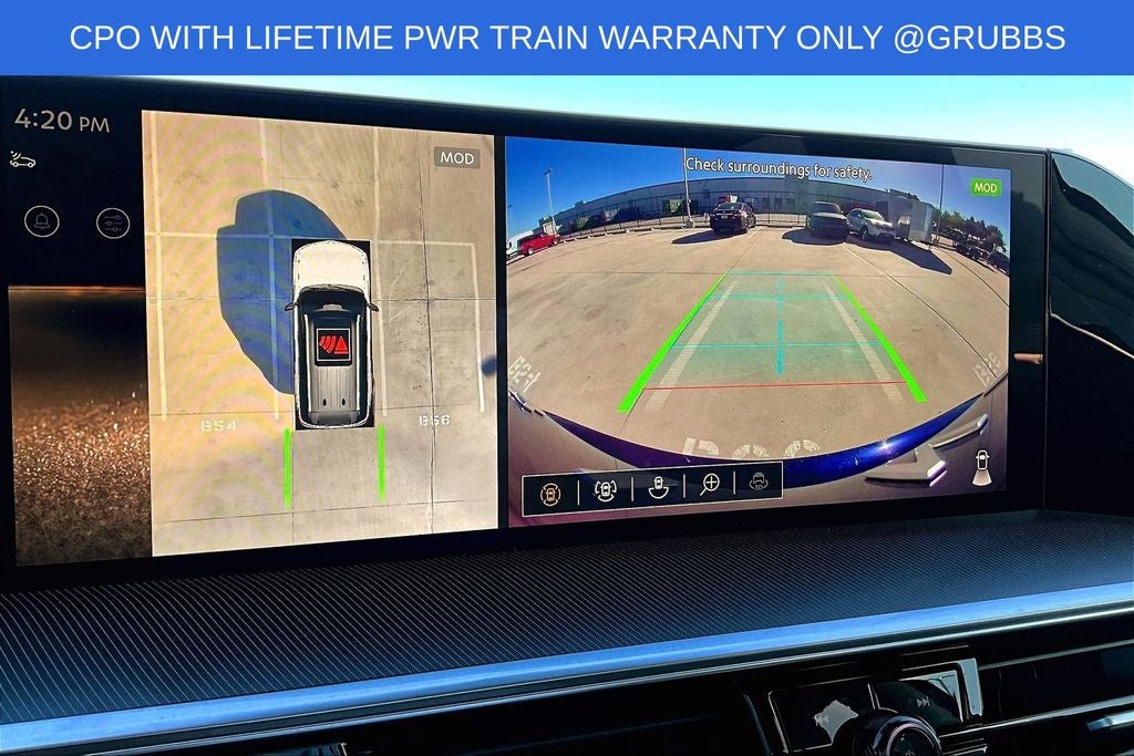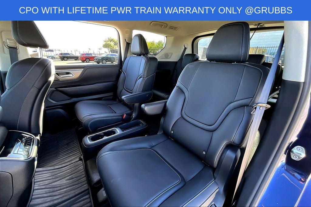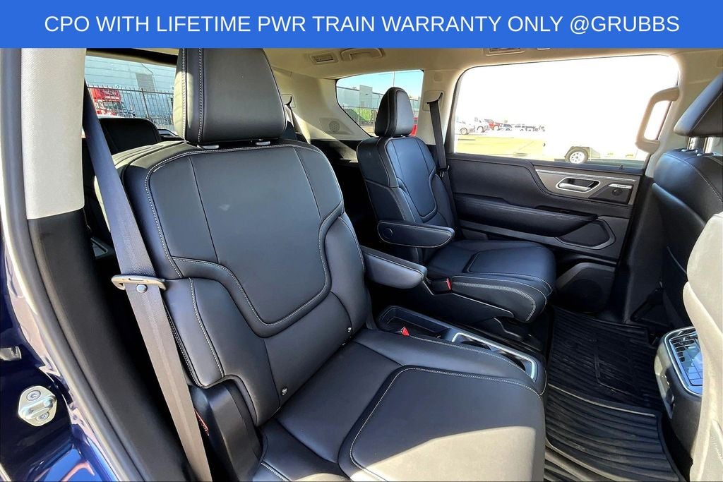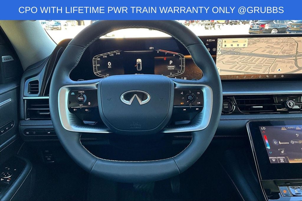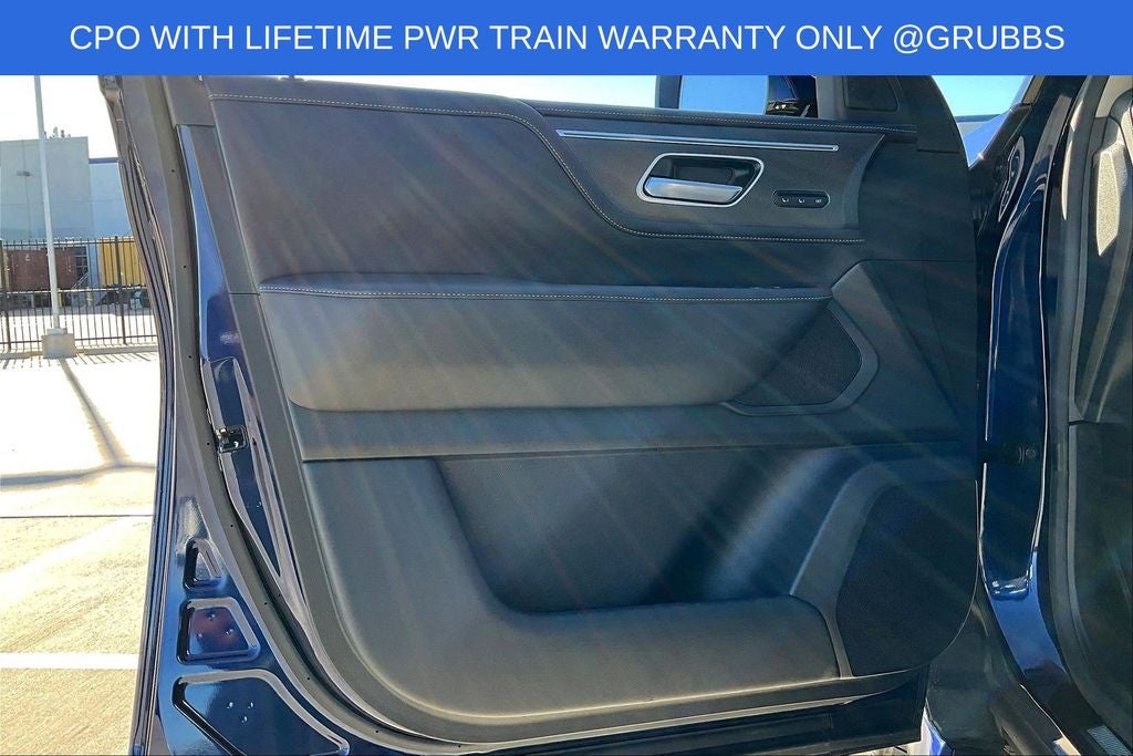 Grubbs INFINITI offers this Market Priced Pre-Owned 2025 INFINITI QX80 PURE in Grand Blue with a premium Graphite interior. Fully inspected and all Eligible Vehicles are backed by our exclusive Grubbs Lifetime Powertrain Warranty, it comes loaded with features including Garage door transmitter: myQ Connected Garage INFINITI Certified Pre-Owned Certified, Garage door transmitter: myQ Connected Garage, 14 Speakers, 20 x 8 Aluminum Alloy Wheels, 3rd row seats: bench, 4-Wheel Disc Brakes, ABS brakes, Air Conditioning, AM/FM radio: SiriusXM with 360L, Anti-whiplash front head restraints, Apple CarPlay/Android Auto, Audio memory, Auto High-beam Headlights, Auto tilt-away steering wheel, Auto-dimming door mirrors, Auto-dimming Rear-View mirror, Automatic temperature control, Brake assist, Bumpers: body-color, Center Front Spoiler, Compass, Delay-off headlights, Driver door bin, Driver vanity mirror, Dual front impact airbags, Dual front side impact airbags, Electronic Stability Control, Emergency communication system: INFINITI InTouch, Four wheel independent suspension, Front anti-roll bar, Front Bucket Seats, Front Center Armrest, Front dual zone A/C, Front reading lights, Fully automatic headlights, Heated door mirrors, Heated Front Bucket Seats, Heated front seats, Heated rear seats, Heated steering wheel, HVAC memory, Illuminated entry, Knee airbag, Leather steering wheel, Literature Kit, Low tire pressure warning, Memory seat, Navigation system: Google Built-in, Occupant sensing airbag, Outside temperature display, Overhead airbag, Overhead console, Panic alarm, Passenger door bin, Passenger vanity mirror, Power door mirrors, Power driver seat, Power Liftgate, Power moonroof, Power passenger seat, Power steering, Power windows, Premium Paint, Radio data system, Radio: Klipsch Premium Audio System w/14 Speakers, Rain sensing wipers, Rear air conditioning, Rear anti-roll bar, Rear reading lights, Rear seat center armrest, Rear window defroster, Rear window wiper, Reclining 3rd row seat, Remote keyless entry, Security system, Speed control, Speed-sensing steering, Split folding rear seat, Spoiler, Steering wheel memory, Steering wheel mounted audio controls, Tachometer, TailorFit-Appointed Seating Surfaces, Telescoping steering wheel, Tilt steering wheel, Traction control, Trip computer, Turn signal indicator mirrors, and Variably intermittent wipers. Garage door transmitter: myQ Connected Garage.