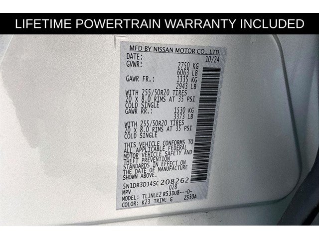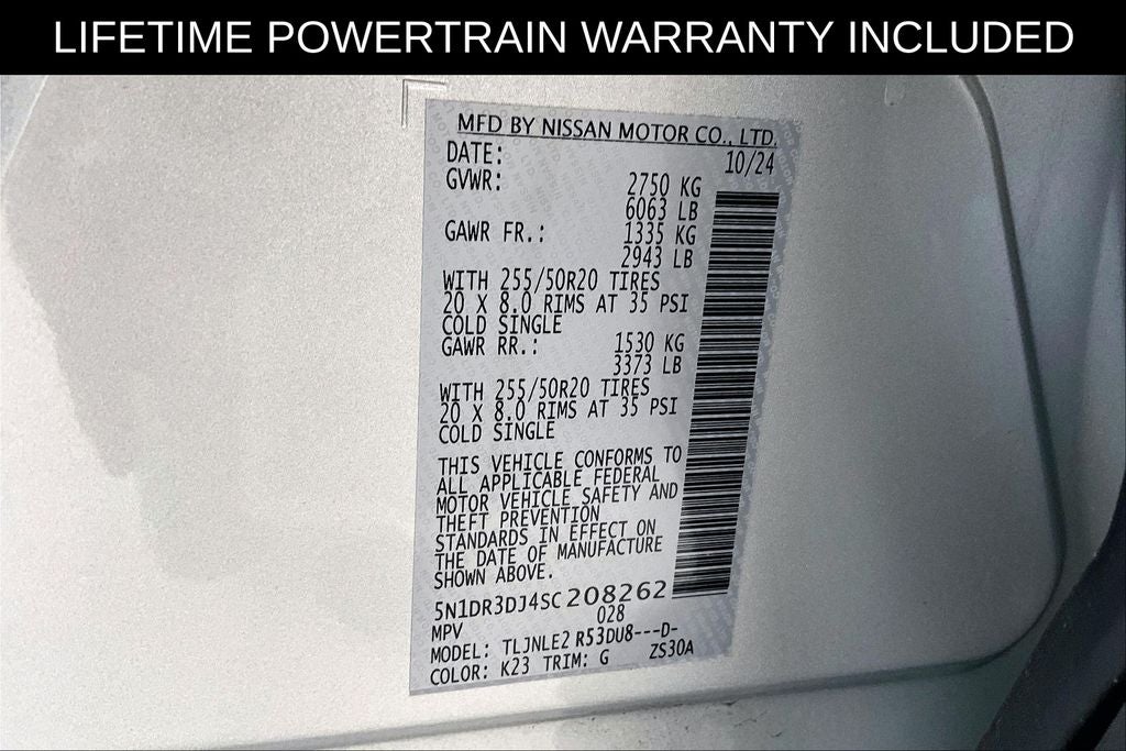 Recent Arrival! CARFAX One-Owner. Grubbs INFINITI offers this Market Priced Pre-Owned 2025 Nissan Pathfinder Platinum in Brilliant Silver Metallic with a premium Charcoal interior. Fully inspected and all Eligible Vehicles are backed by our exclusive Grubbs Lifetime Powertrain Warranty, it comes loaded with features including 4WD 4WD, 13 Speakers, 3rd row seats: bench, 4-Wheel Disc Brakes, ABS brakes, Air Conditioning, Alloy wheels, AM/FM radio: SiriusXM, Auto High-beam Headlights, Auto tilt-away steering wheel, Auto-dimming Rear-View mirror, Automatic temperature control, Bodyside moldings, Bose Premium Audio System, Brake assist, Bumpers: body-color, Climate Controlled Front Bucket Seats, Delay-off headlights, Driver door bin, Driver vanity mirror, Dual front impact airbags, Dual front side impact airbags, Electronic Stability Control, Emergency communication system, Exterior Parking Camera Rear, Four wheel independent suspension, Front anti-roll bar, Front Bucket Seats, Front Center Armrest, Front dual zone A/C, Front reading lights, Fully automatic headlights, Garage door transmitter: HomeLink, Heads-Up Display, Heated door mirrors, Heated front seats, Heated rear seats, Heated steering wheel, Illuminated entry, Knee airbag, Leather steering wheel, Low tire pressure warning, Memory seat, Navigation system: NissanConnect with Navigation and Services, NissanConnect featuring Apple CarPlay and Android Auto, NissanConnect with Navigation and Services, Occupant sensing airbag, Outside temperature display, Overhead airbag, Overhead console, Panic alarm, Passenger door bin, Passenger vanity mirror, Power door mirrors, Power driver seat, Power Liftgate, Power moonroof, Power passenger seat, Power steering, Power windows, Radio data system, Radio: AM/FM Audio System, Rain sensing wipers, Rear air conditioning, Rear anti-roll bar, Rear reading lights, Rear seat center armrest, Rear side impact airbag, Rear window defroster, Rear window wiper, Reclining 3rd row seat, Remote keyless entry, Security system, Semi-Aniline Leather-Appointed Seating Surfaces, Speed control, Speed-sensing steering, Speed-Sensitive Wipers, Split folding rear seat, Spoiler, Steering wheel memory, Steering wheel mounted audio controls, Tachometer, Telescoping steering wheel, Tilt steering wheel, Traction control, Trip computer, Turn signal indicator mirrors, Variably intermittent wipers, Ventilated front seats, and Wheels: 20 x 8J Machined Alloy. 2025 Nissan Pathfinder Platinum 4D Sport Utility 4WD 3.5L V6 DOHC 9-Speed Automatic Brilliant Silver Metallic Upgraded Wheel Package, 4WD.